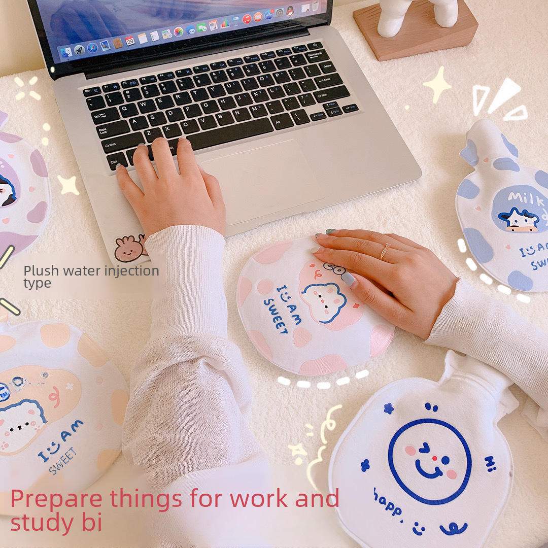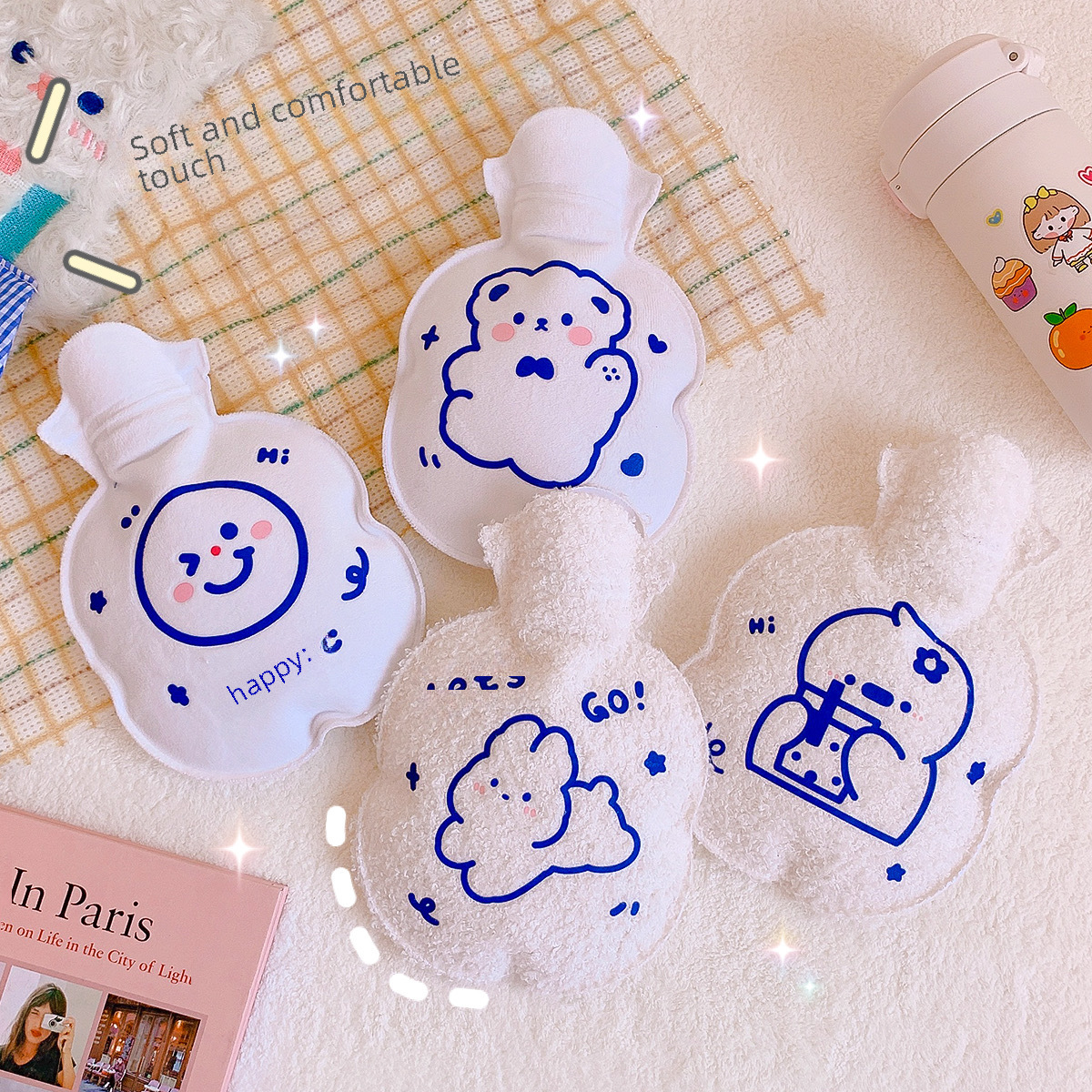 Art Blue Plush Hot Water Bag Cartoon Water Injection Warm Water Bag Portable Mini Hand Warmer for Students Cute Warm Belly