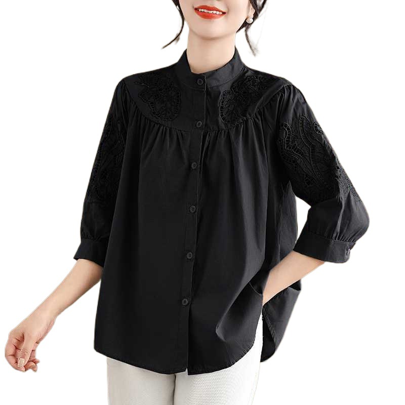 | nameOriginal | Artistic Fashion Shirt Women's Korean-style Vertical Collar Seven-point Lantern Sleeve Embroidered Top 2024 Loose Short-sleeved Shirt |