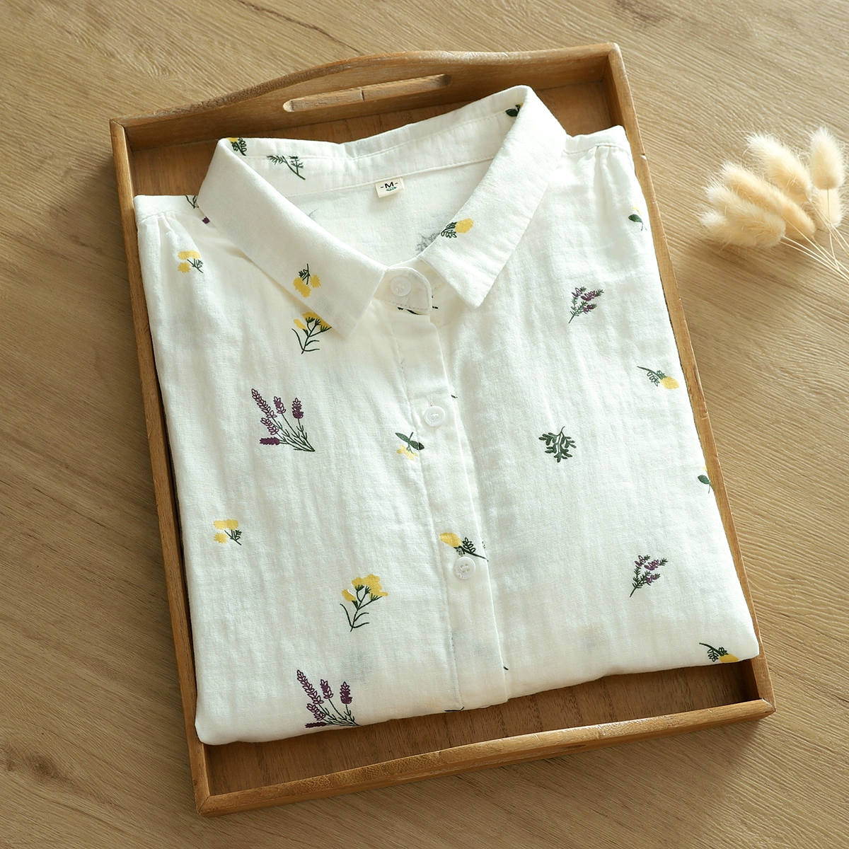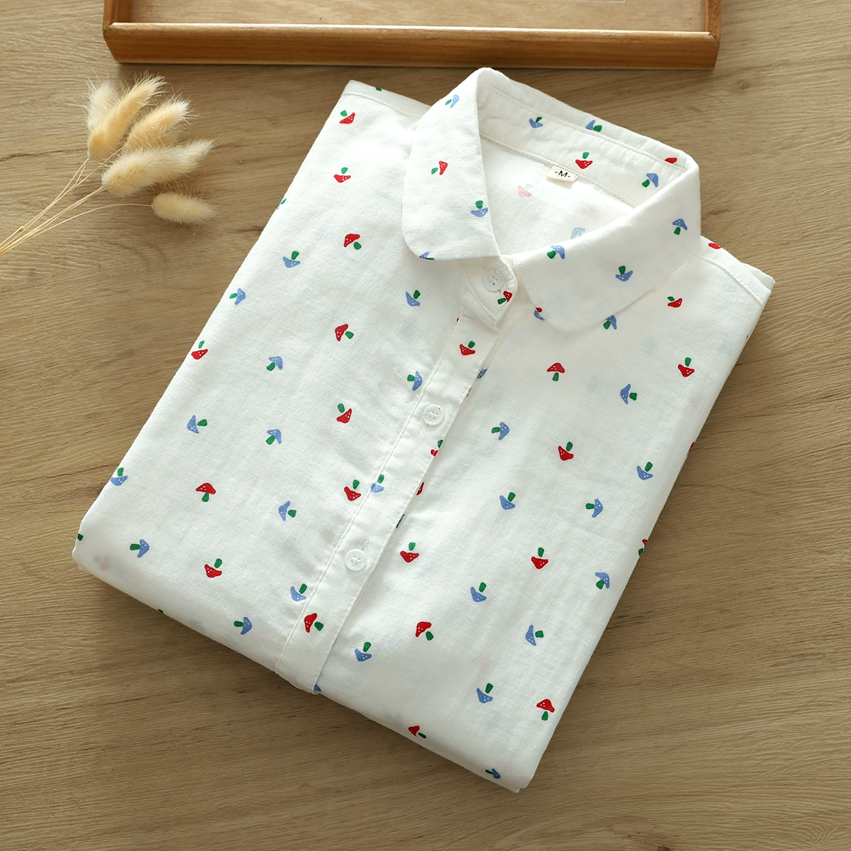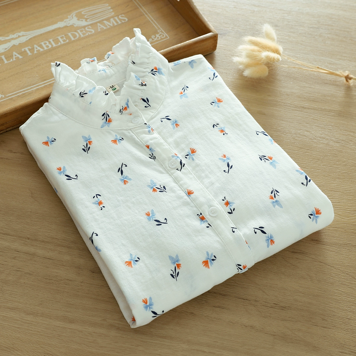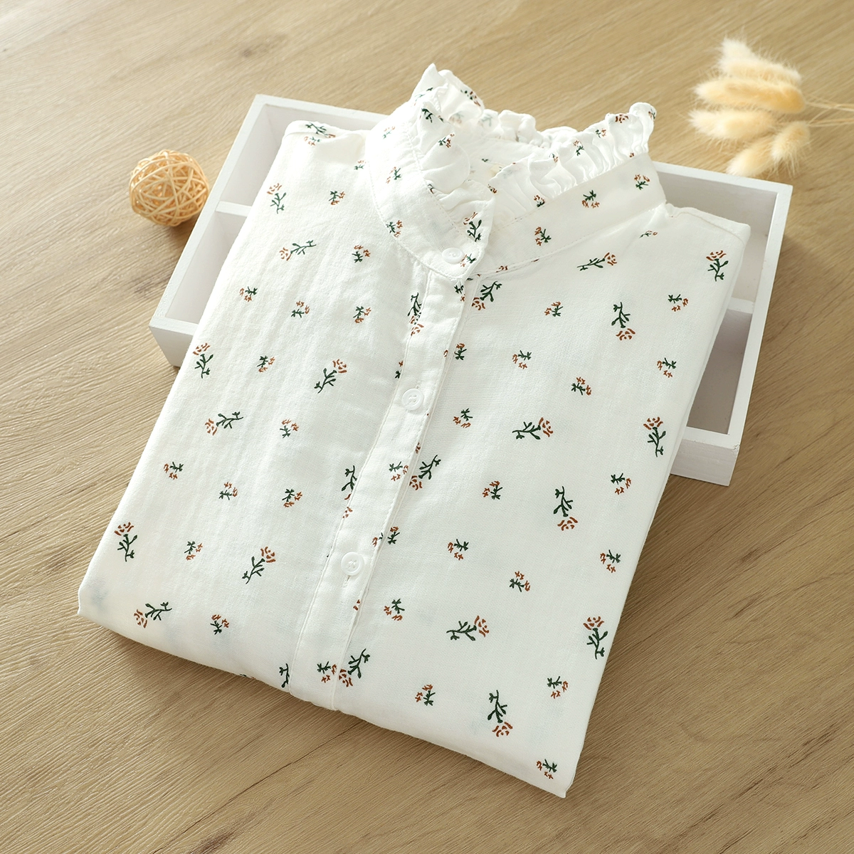| nameOriginal | Artistic fungus stand collar skin-friendly pure cotton long-sleeved shirt |