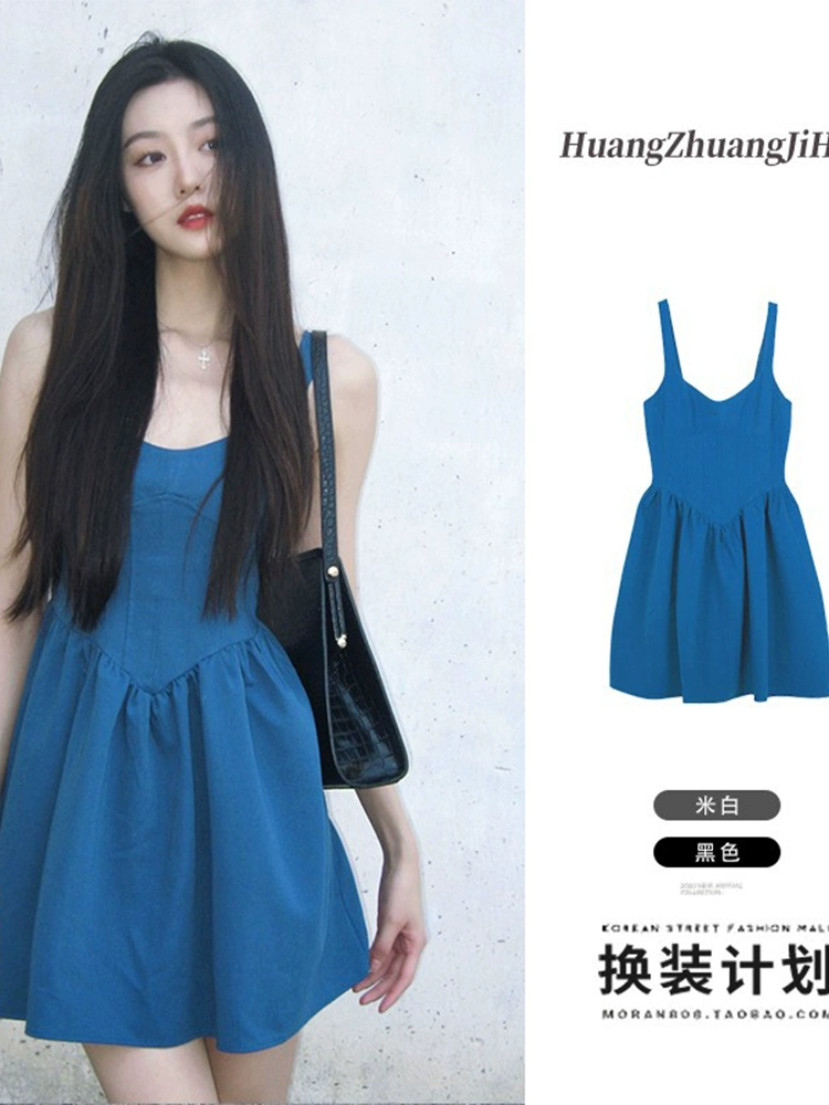 | nameOriginal | Artistic girly Klein blue dress for women in summer, cute and age-reducing, small, beautiful and unique suspender skirt |