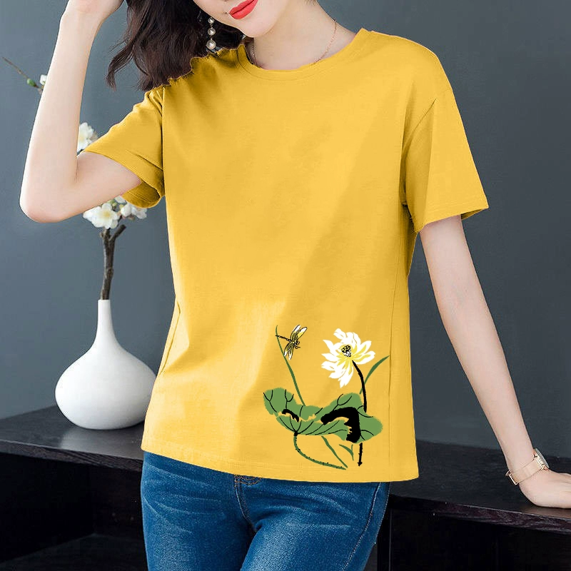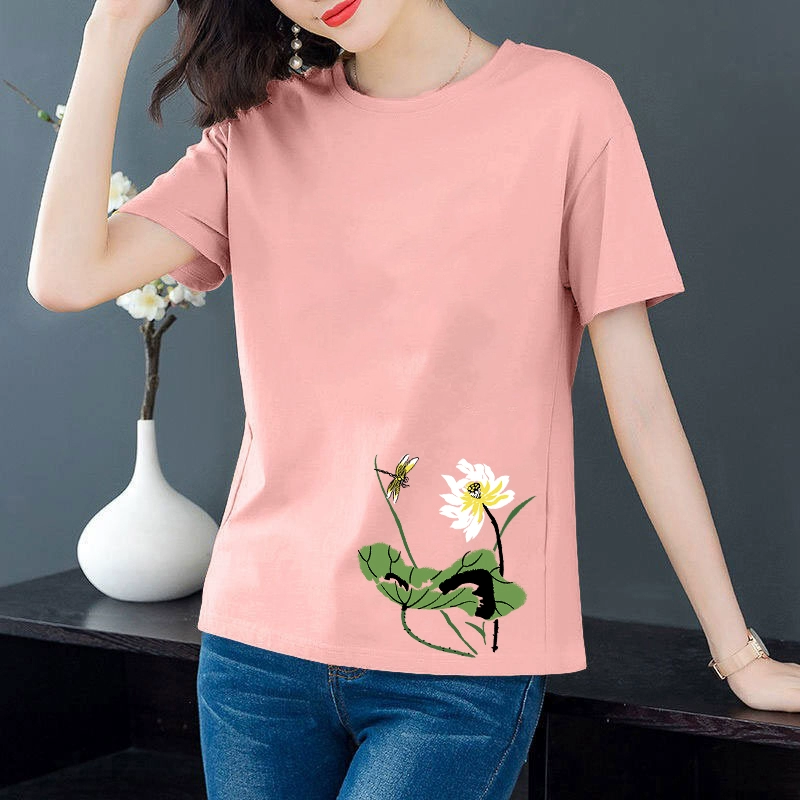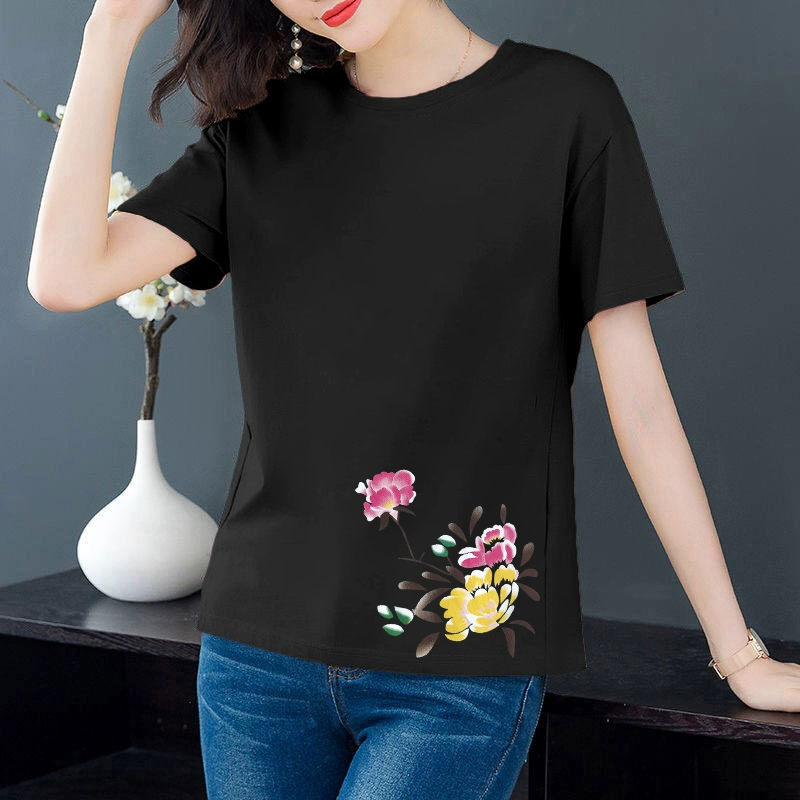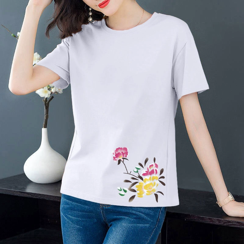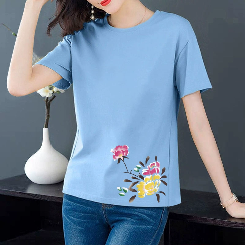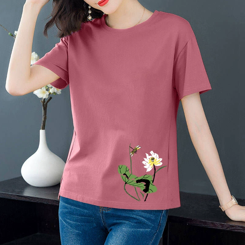 Artistic loose-fitting middle-aged mother's age-reducing short-sleeved T-shirt