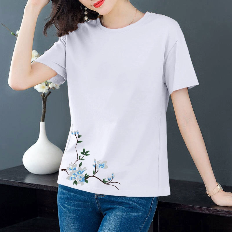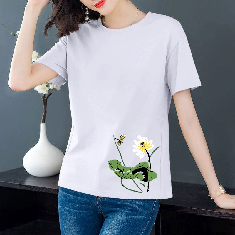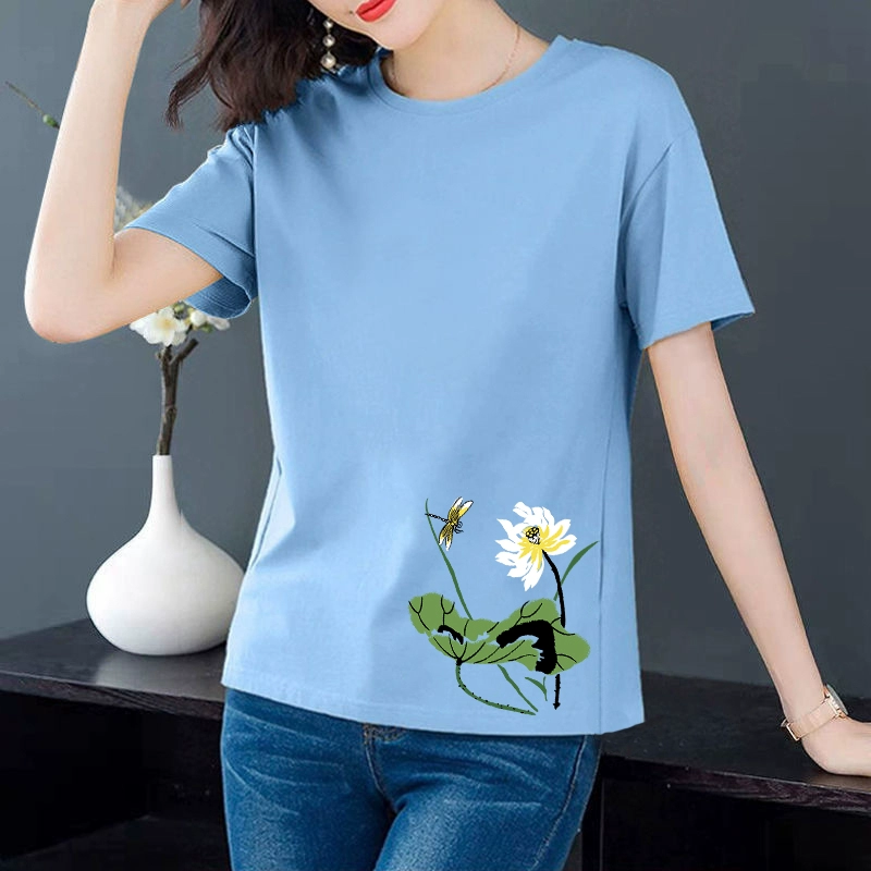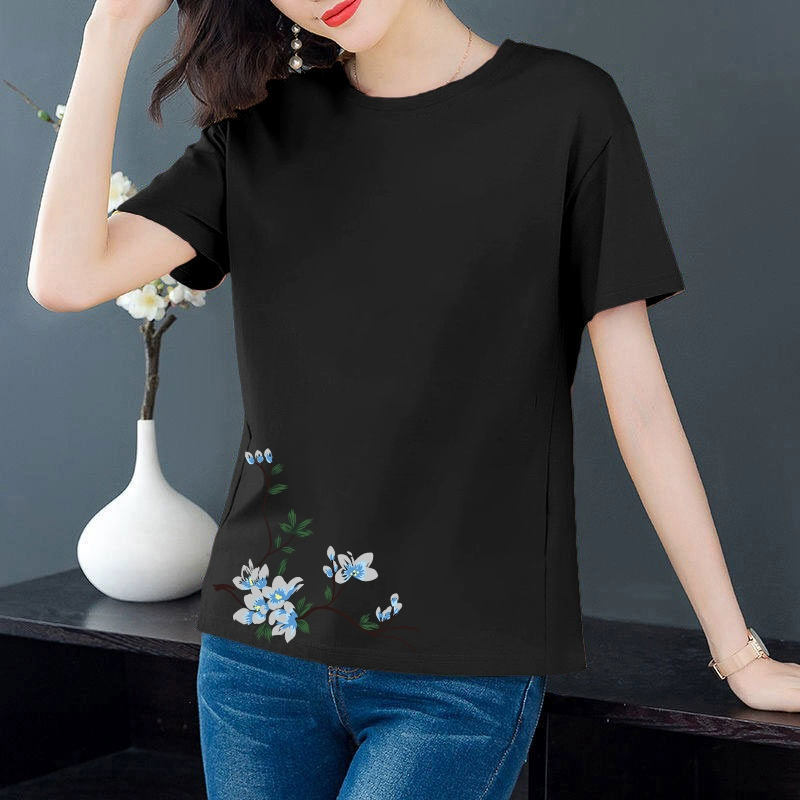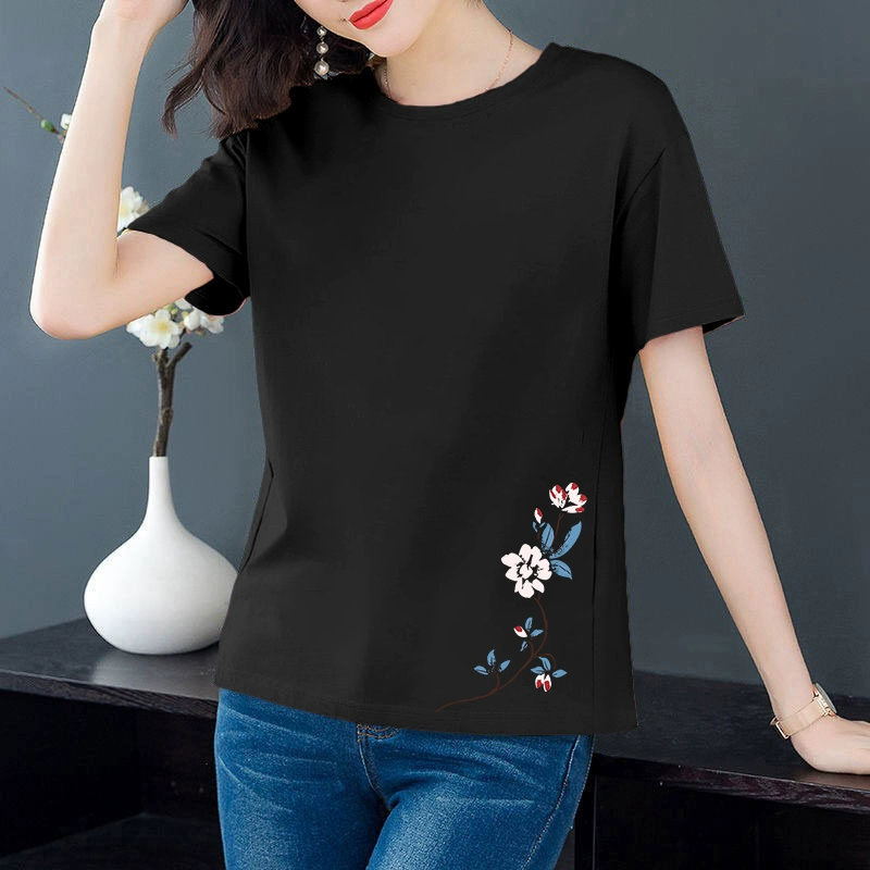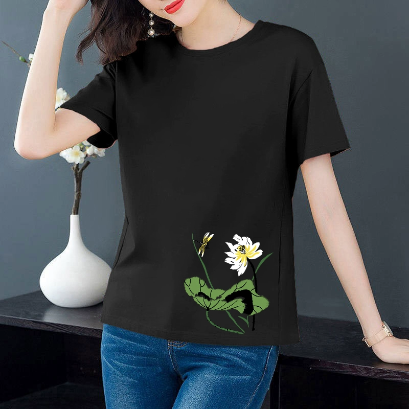 Artistic loose-fitting middle-aged mother's age-reducing short-sleeved T-shirt