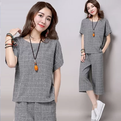 | nameOriginal | Artistic loose three-quarter wide-leg pants two-piece set in linen |