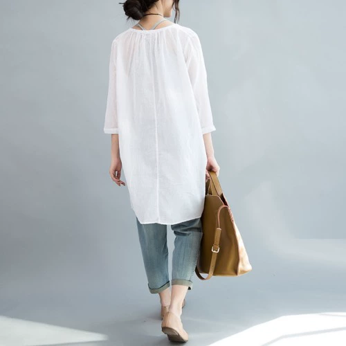 | nameOriginal | Artistic style shirt plus size women's linen sun protection clothing |