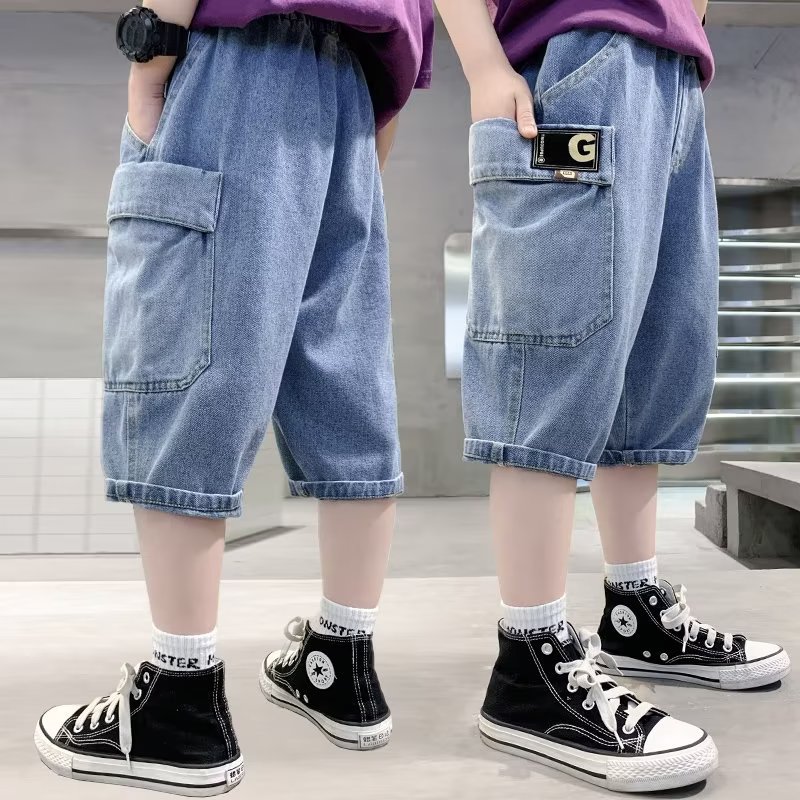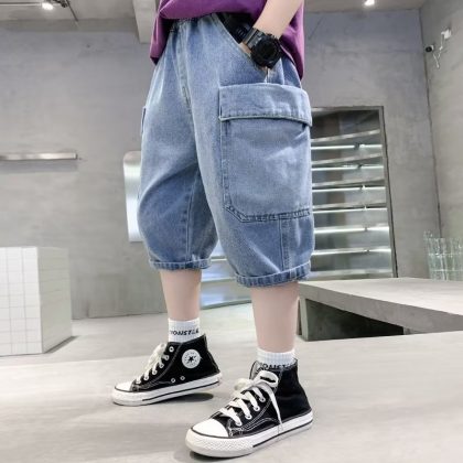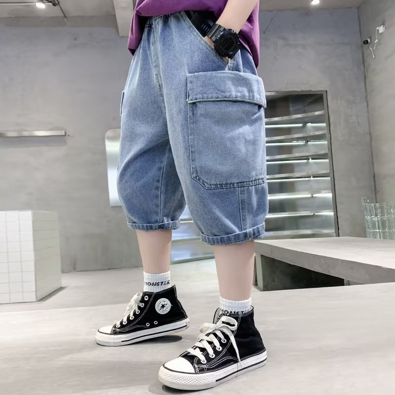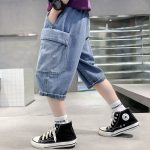 Artistic summer Harajuku new jeans lazy fashion ins simple mid-waist temperament versatile children’s clothing trend