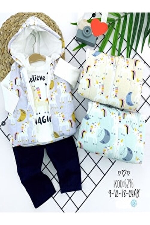 | nameOriginal | artwaystore 9-12-18-24 Months Inflatable Hooded Vest Unicorn Horse Printed Long Sleeve Sweat 3pcs Baby Girl Suit |