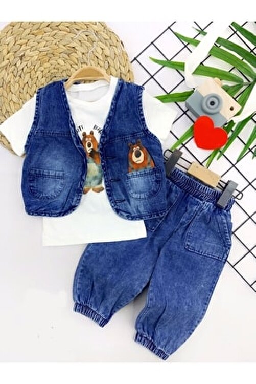 | nameOriginal | artwaystore Jeans Vest And Pants Pocket Printed T-Shirt 3 Pcs Baby Set |