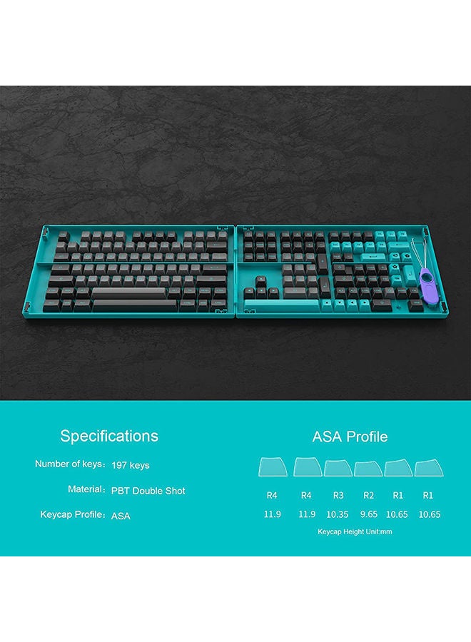 Akko Black & Cyan 197-Key ASA Profile PBT Double-Shot Keycap Set for Mechanical Keyboards with Mac and ISO Enter Keys with Collection Box