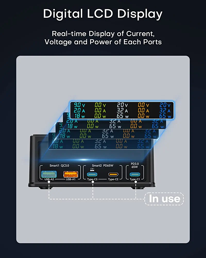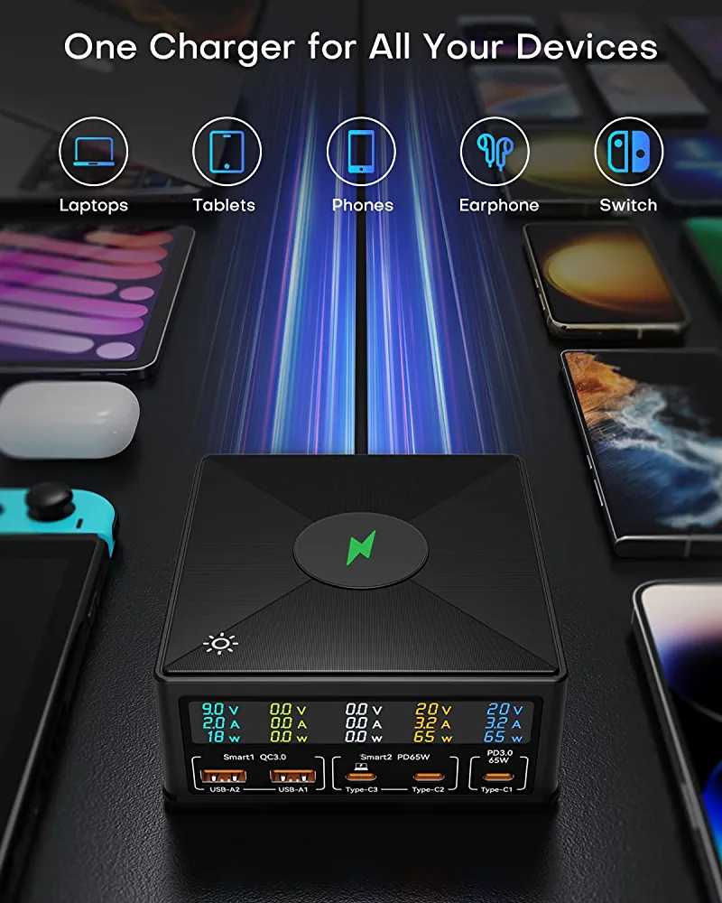 | nameOriginal | USB Charging Station,ASOMETECH 160W 5-Port USB C Charging Station with 65W PD USB-C Port,QC3.0 Port,Wireless Charger,LCD Display Multi Port Fast USB Charging Hub for MacBook,Laptop,iPad,iPhone,Samsung |