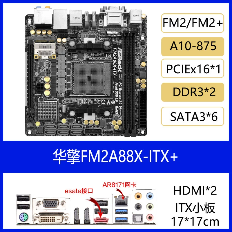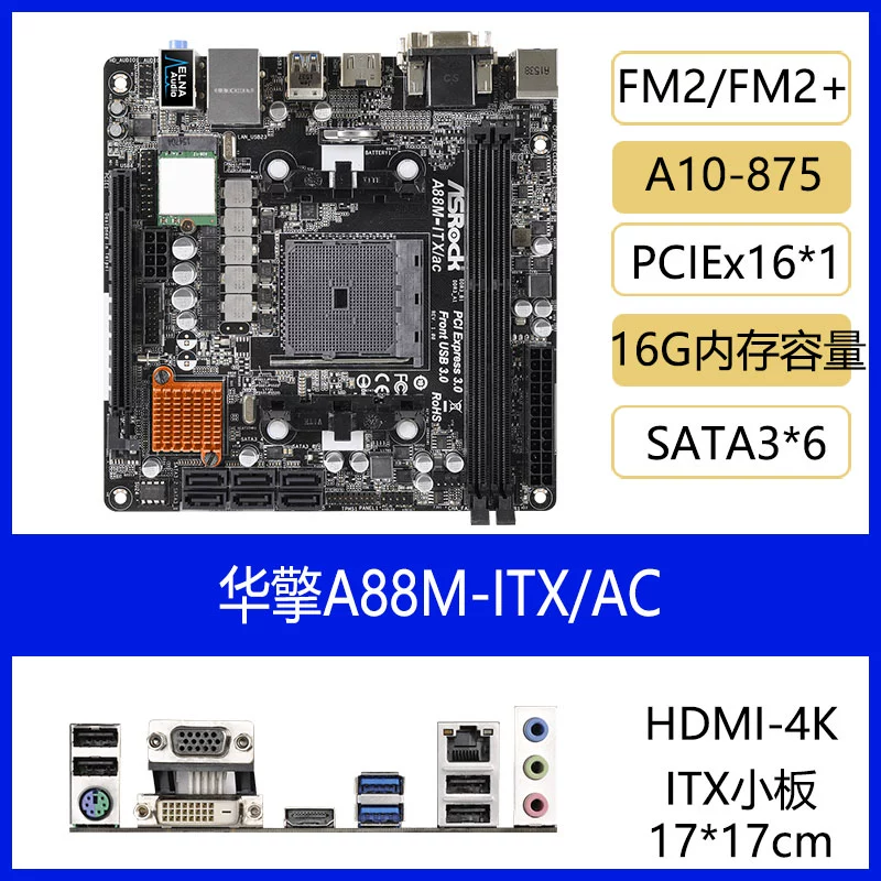 Huaqing A88M-ITX/AC motherboard FM2A88X-ITX+ 17*17cm supports FM2/FM2+ desktop machine