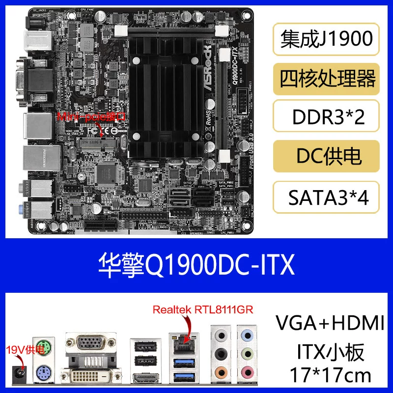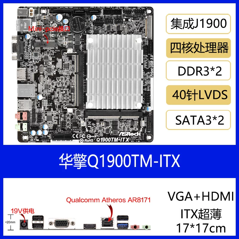 | nameOriginal | ASRock Q1900B TM DC-ITX motherboard integrated J1900 quad-core processor 17*17cm |