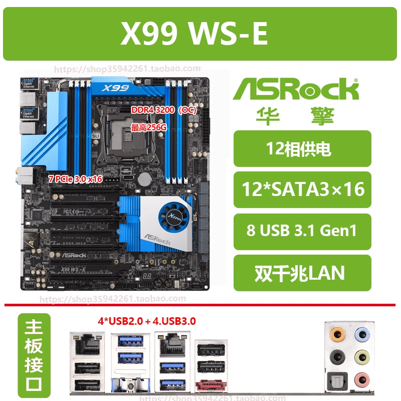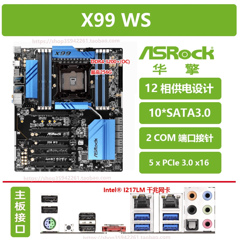 | nameOriginal | ASRock X99 GAMING I7 WS -E/10G 2011-3 dual network port 10G network card motherboard E5-V3 V4 |