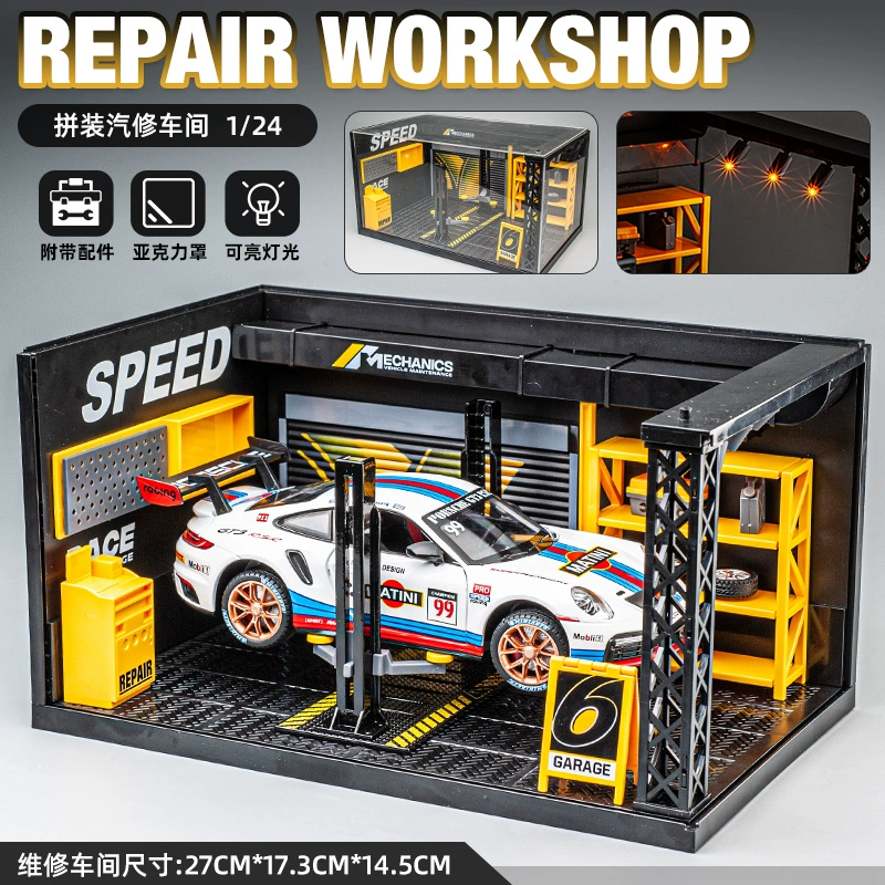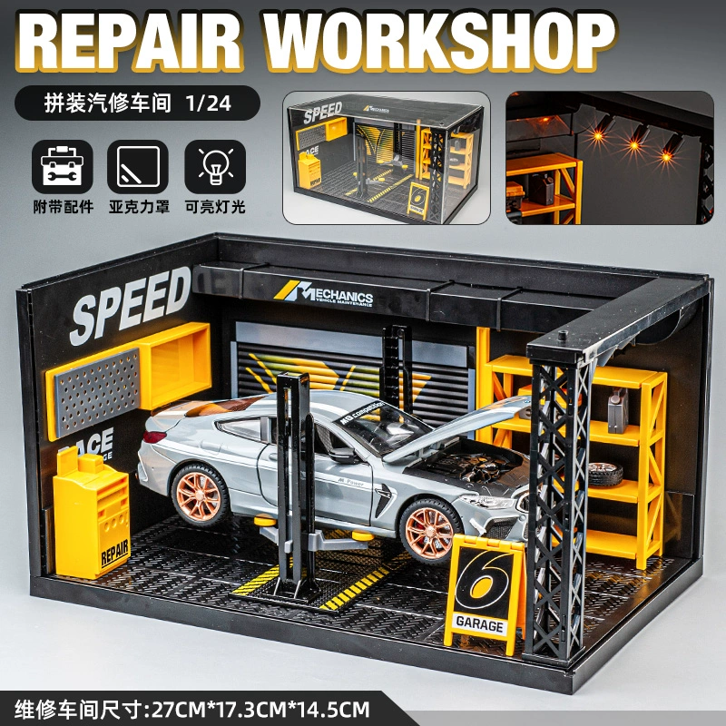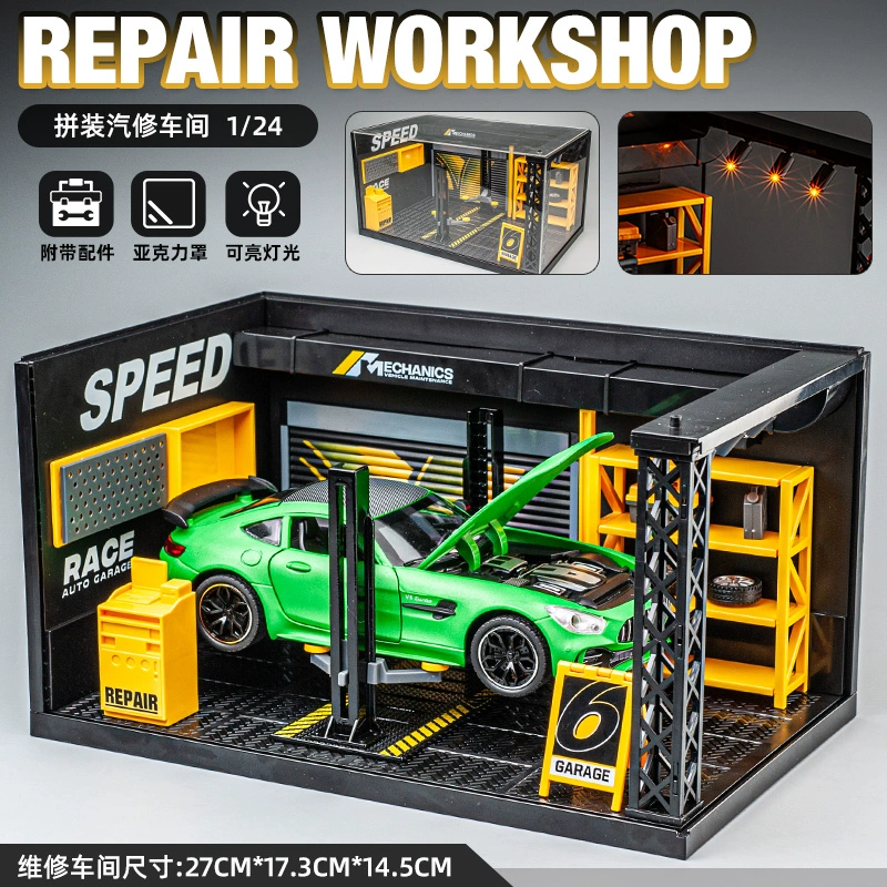 Incorpting model car maintenance workshop modification store simulation auto repair factory alloy model car storage box scene scene