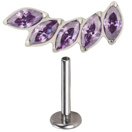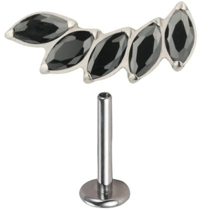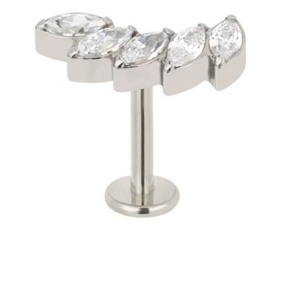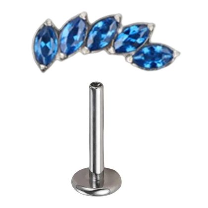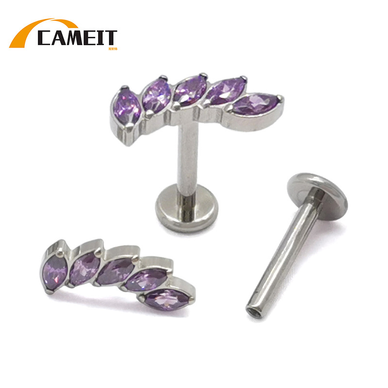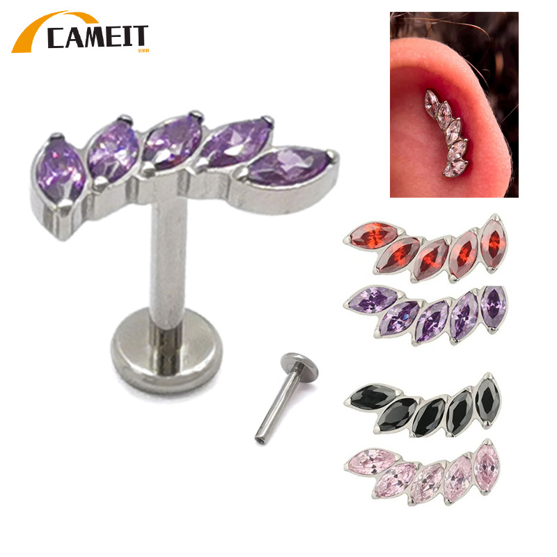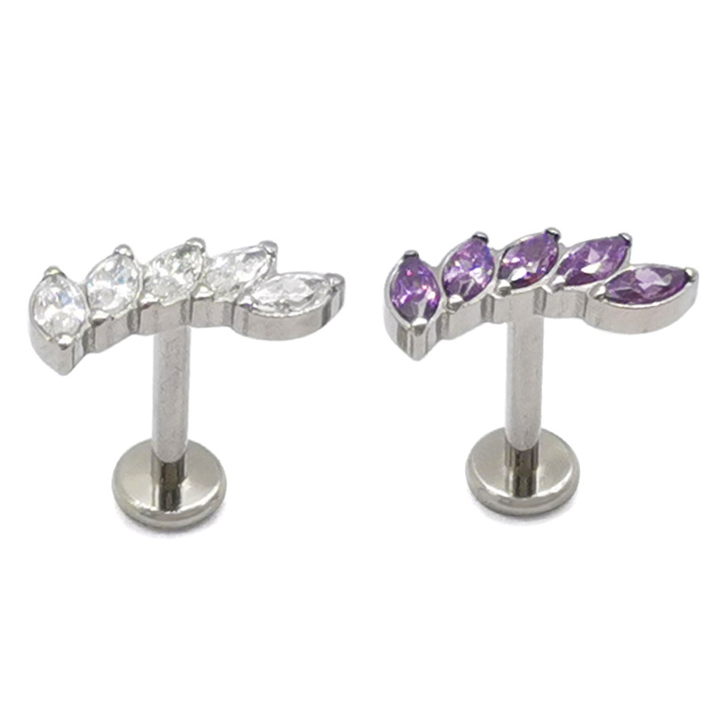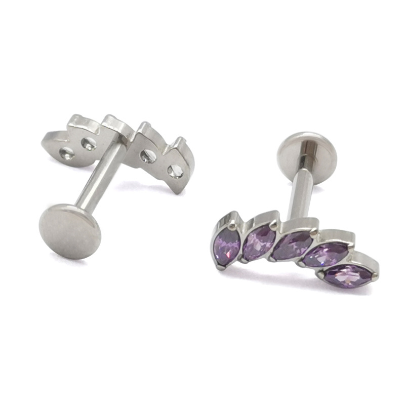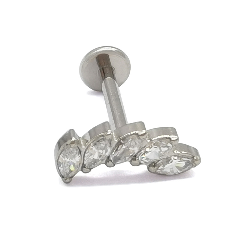 ASTM F-136 G23 Titanium Alloy Lip Stud Earrings with Horse Eye Zircon Fashion Personalized Straight Bar Flat Bottom Perforated Head
