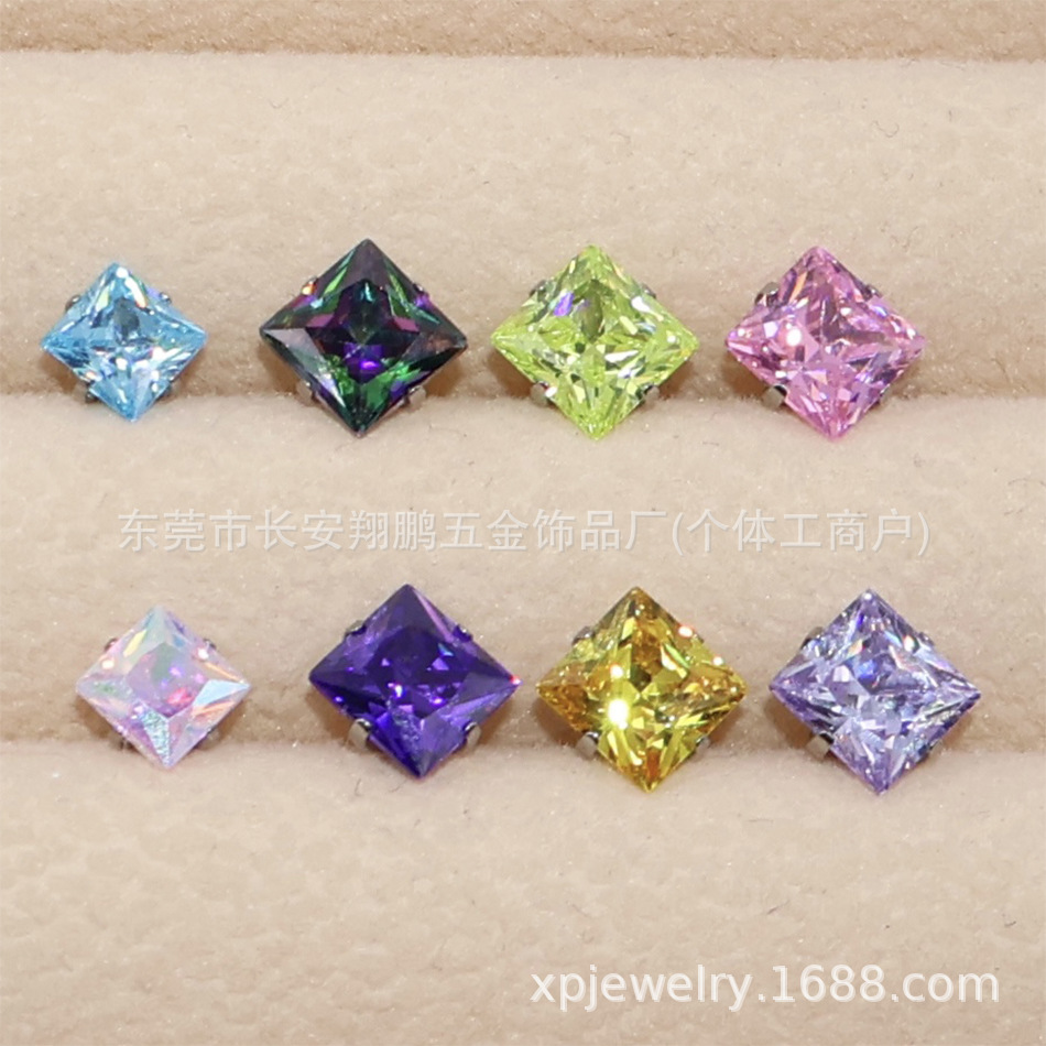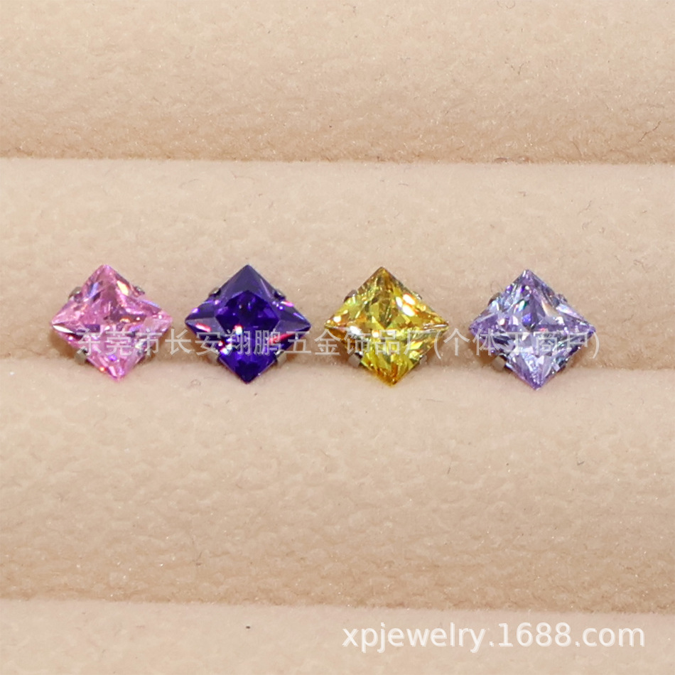 | nameOriginal | ASTMF-136 titanium round bottom claw inlaid with square zircon earrings G23 titanium alloy bowl bottom claw inlaid with 5A super flash square zirconium |