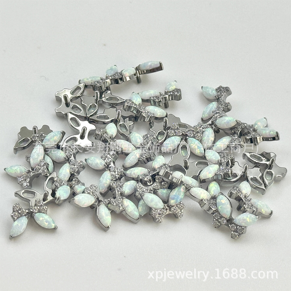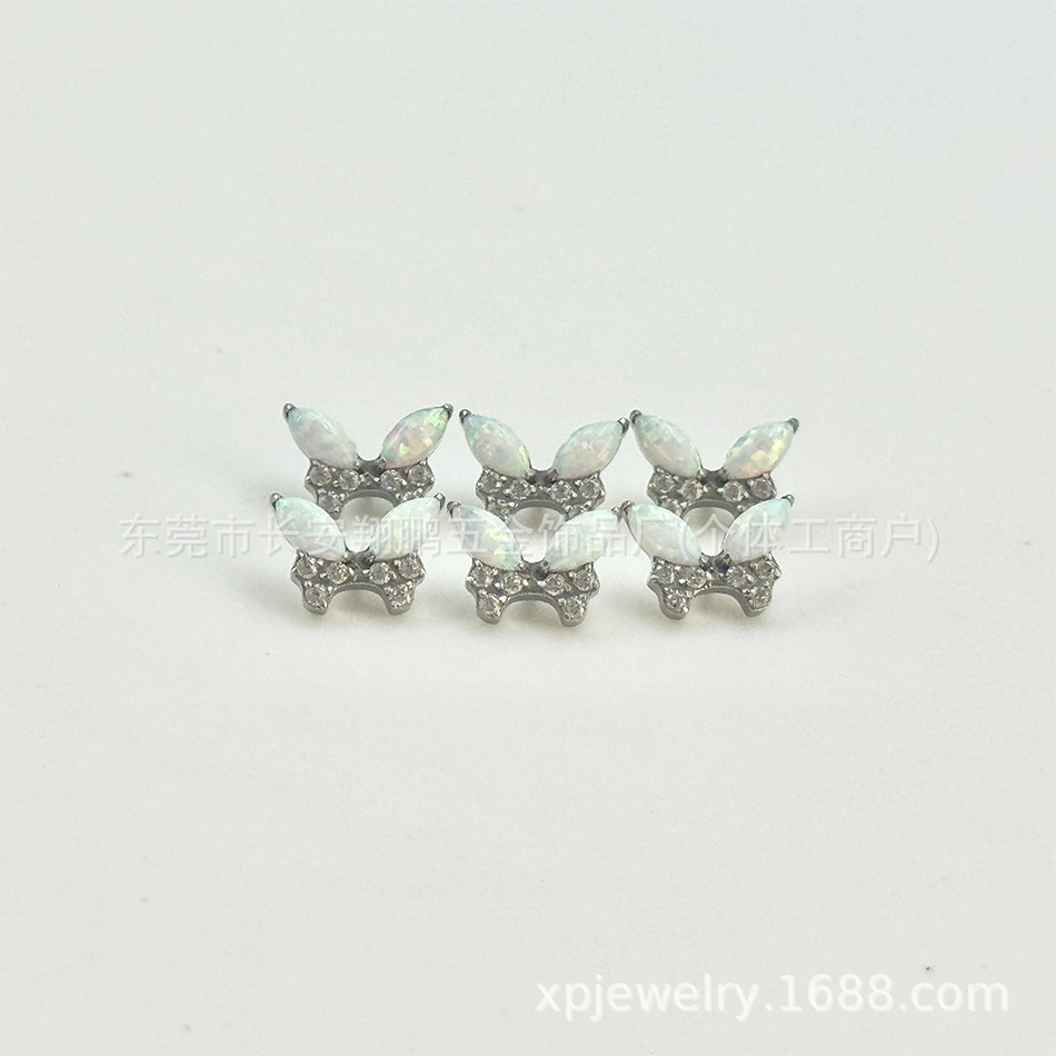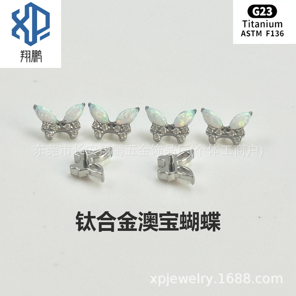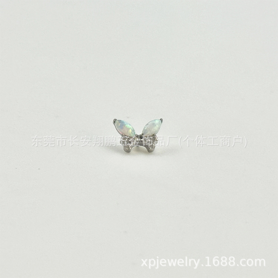 ASTMF136 Titanium Alloy Opal Zircon Butterfly Lip Nail Head G23 Internal Thread Butterfly Earring Puncture Jewelry