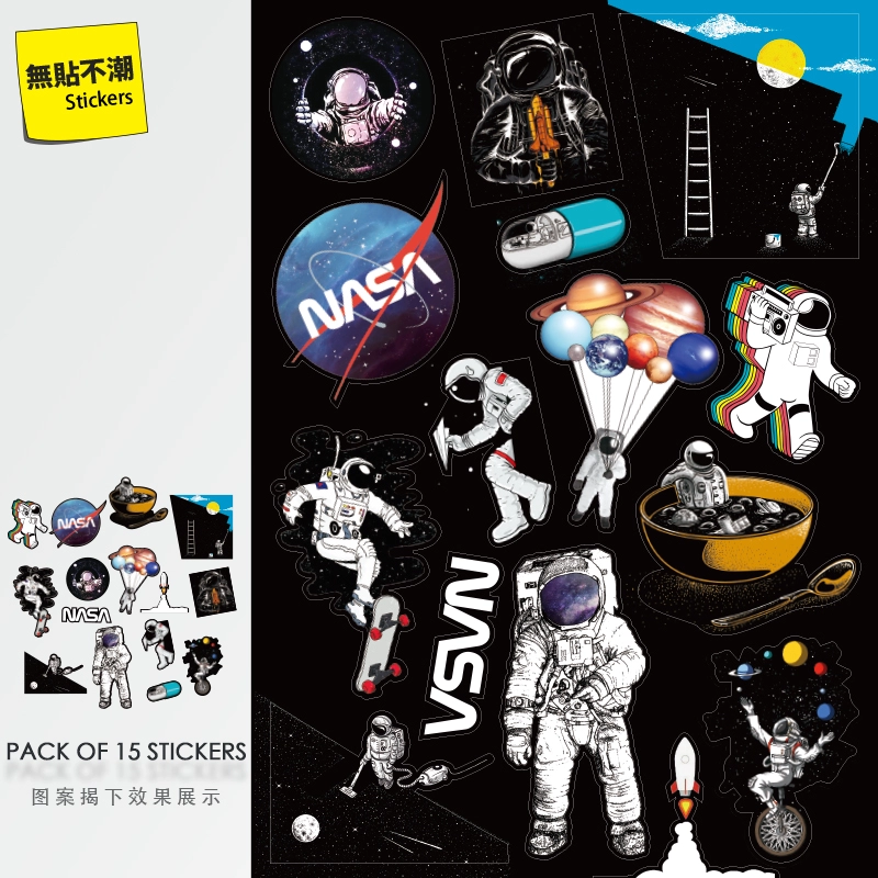 | nameOriginal | Astronaut Cartoon Personality Sticker Universe NASA Space Suitcase Travel Case Notebook Waterproof Sticker |