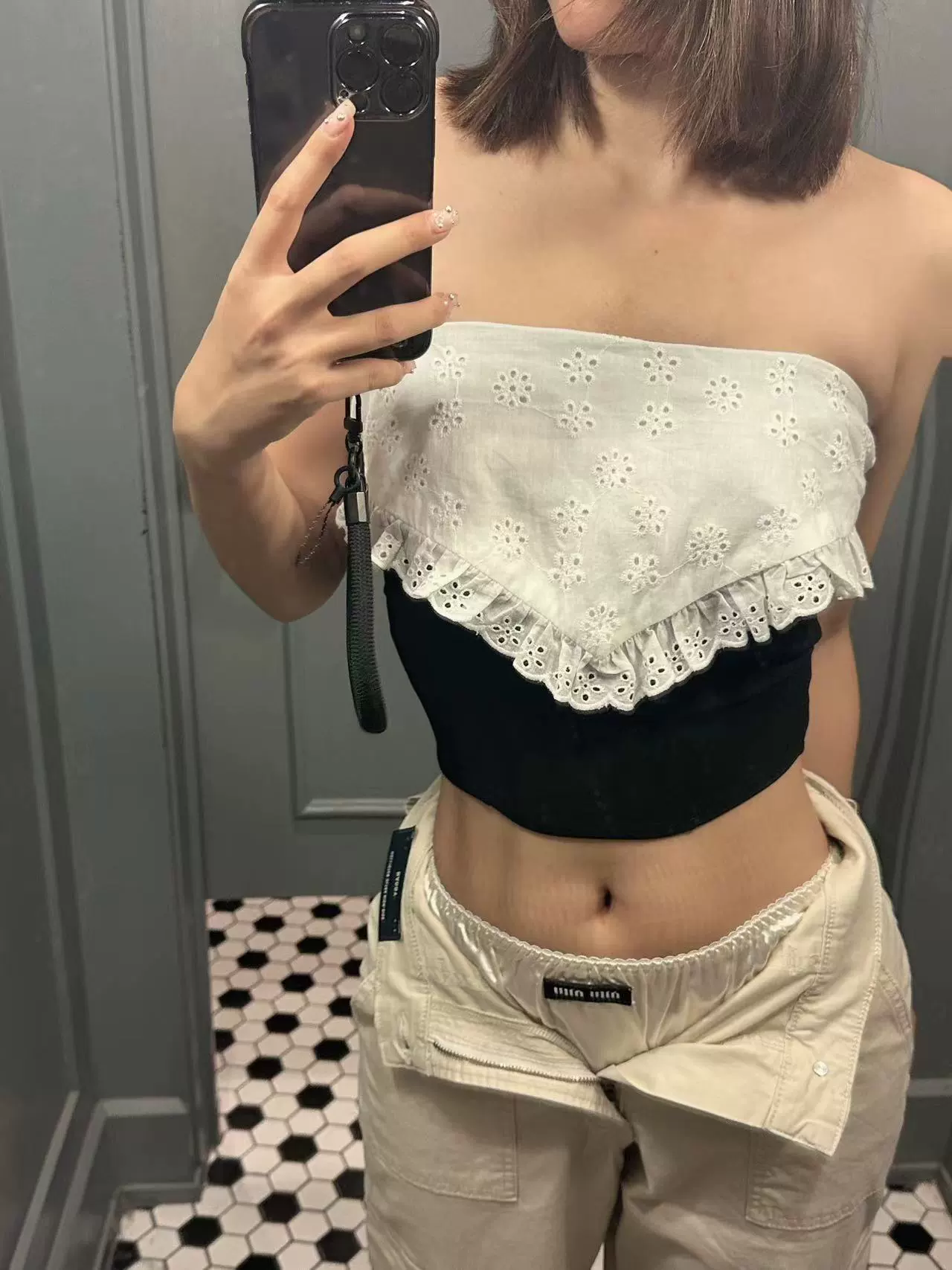 ASTUTE niche lace splicing spot autumn and winter suspenders