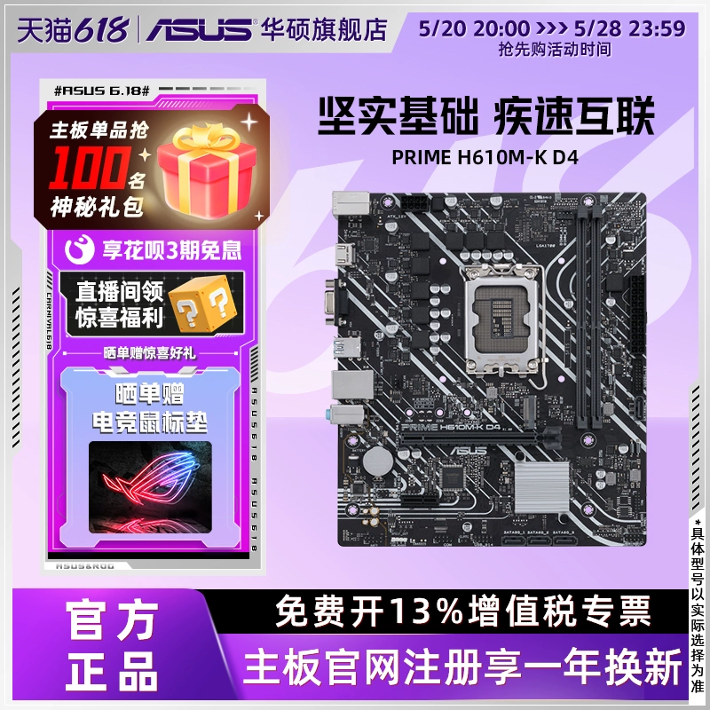 | nameOriginal | Asus/ASUS PRIME H610M-K D4 supports 12100F/12490F DDR4 motherboard flagship store |