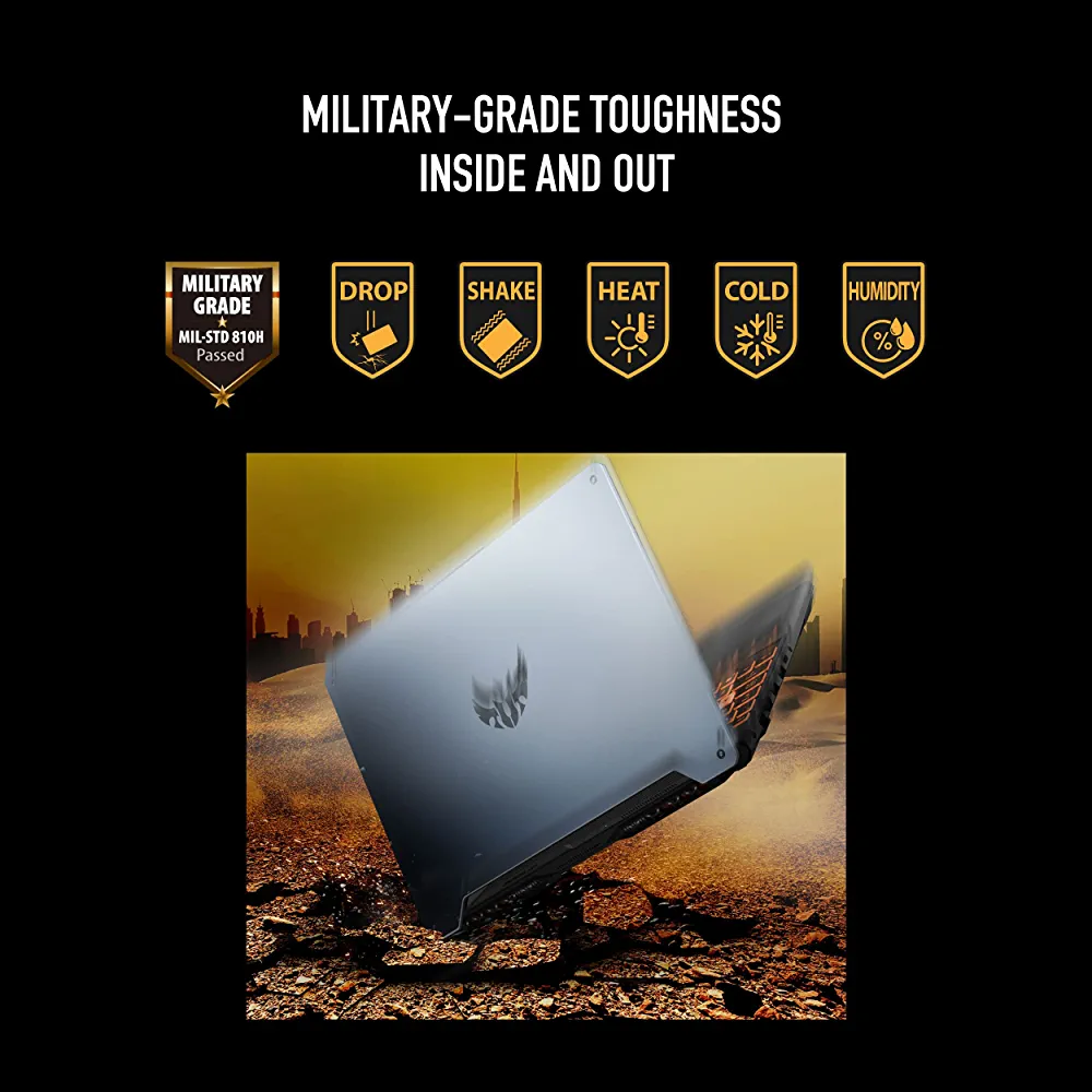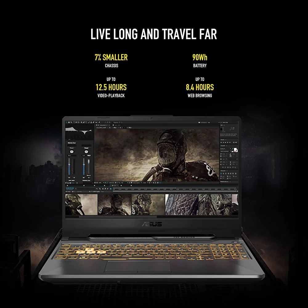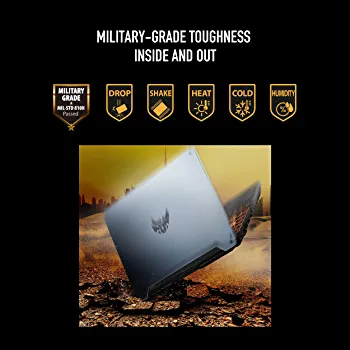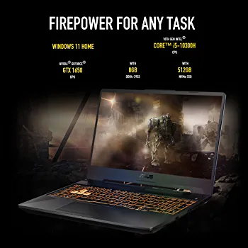 FIREPOWER FOR ANY TASK Armed for combat, the TUF Gaming F15 features a 10th Gen Intel Core i5 CPU with 4 cores to tear through serious gaming, streaming, and heavy duty multitasking. Paired with a GeForce GTX 1660 discrete GPU, it can pump out reliably high frame rates in a wide range of games. Accelerate load times across a massive collection with an 512GB NVMe PCIe SSD. Despite boasting a chassis that's smaller and lighter than its predecessors, the F15 houses a bigger battery for longer life. Its formidable 48Wh battery offers enough power to sustain up to 6.5 hours of video playback, meaning you’ve got ample time to catch up on streams and take care of light tasks without hunting down the nearest outlet. Lighter and longer-lasting, this machine can work and travel as freely as you do. In order to earn the TUF Gaming name, these laptops must successfully survive a rigorous battery of MIL-STD-810H tests. Test devices are exposed to drops, vibration, humidity, and extreme temperatures to ensure reliability. Dependable even in the harshest conditions, the F15 is more than capable of withstanding the accidental bumps and knocks of everyday life. Comprehensive cooling ensures that every TUF Gaming laptop can sustain high performance and maintain effectiveness over a long life span. Multiple heat pipes and 3 heatsinks draw heat away from core components and dissipate it quickly even during intense gaming sessions. A self-cleaning cooling design ensures that each device’s cooling system stays strong for the long run, while operating modes balance performance and noise levels for the specific task at hand. Two upgraded speakers with four cut-outs pump out 1.8x more sound with 2.7x deeper bass than previous generations for a richer audio experience. DTS:X Ultra technology delivers high-fidelity 7.1-channel virtual surround sound for theater-quality audio with stereo headsets. Get the drop on enemies with the enhanced spatial awareness that surround sound provides, or enjoy the nuances of layered musical performances. Up to 8 preset modes for music, movies, and gaming genres optimize your experience further, while a built-in equalizer lets you fine-tune your settings at will. Featuring a speedy IPS-level panel with 144Hz, the TUF Gaming F15 is perfect for fast-paced gameplay. The versatile USB 3.2 Gen 2 Type-C port supports DisplayPort 1.4 technology, meaning you can connect a secondary G-SYNC gaming display and experience games at up to 4K resolution and a 144Hz refresh rate. Ultrafast Intel Wi-Fi 6 with Gig+ (802.11ax) lets you game reliably at LAN speeds wherever compatible connections are available. Wi-Fi 6 (Gig+) boosts network speed and efficiency over previous Wi-Fi 5 standards, providing a better connection in crowded spaces. It also reduces latency, meaning less lag for network-sensitive activities like online gaming. *Wi-Fi speeds are based on theoretical performance. Actual performance may vary. |