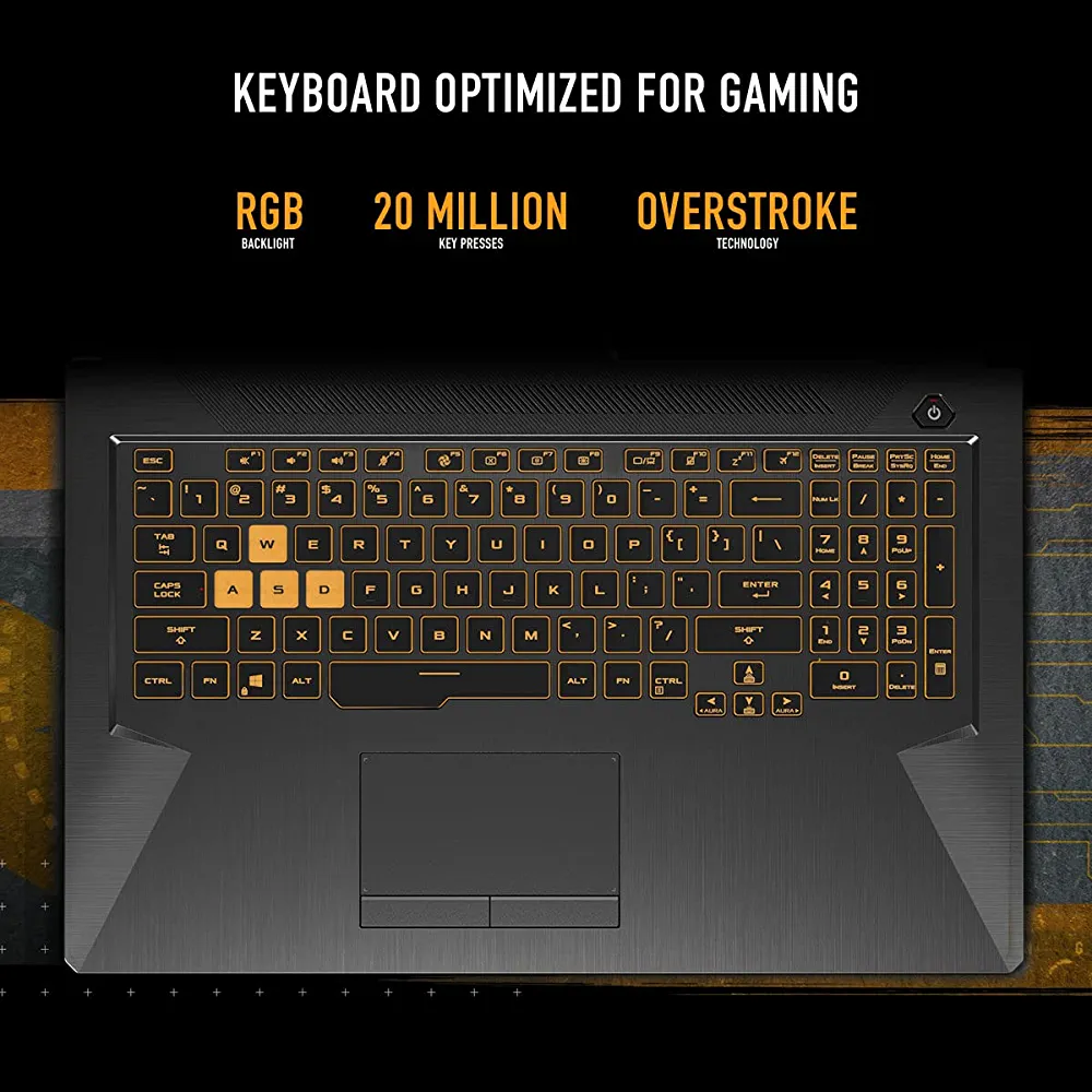 The desktop-style keyboard is optimized for gaming, with uniform RGB backlighting and highlighted WASD accents for easy movement commands. The overstroke technology triggers higher in each keystroke for faster responsiveness and effortless control, and each key is durable enough to withstand over 20 million presses.