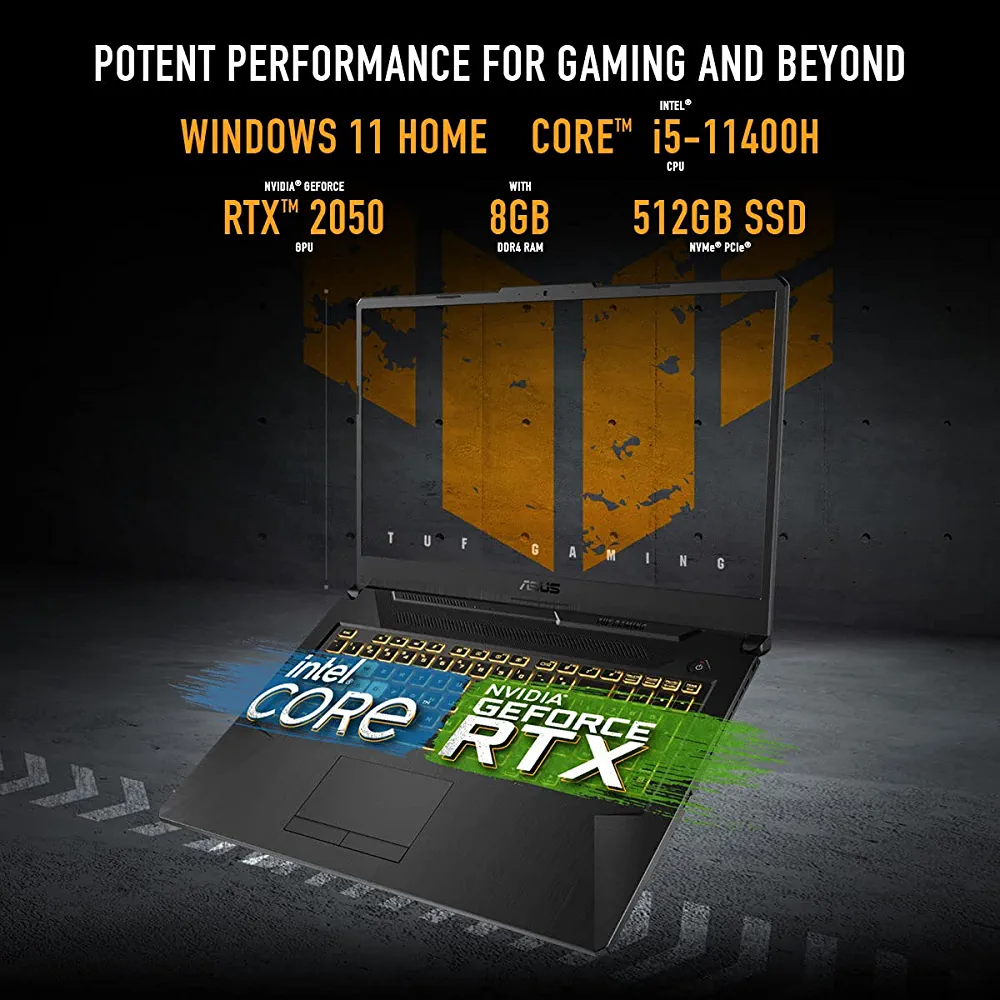 Introducing the TUF Gaming F17, a powerful Windows 11 Home gaming laptop designed to elevate your gaming experience. With a 6-core 11th Gen Intel Core i5 CPU running at 2.7 GHz, 8GB RAM, and a 512GB SSD, this laptop is built to handle demanding tasks with ease. The NVIDIA GeForce RTX 2050 GPU delivers smooth gameplay on a 17.3’’ FHD 144Hz display, while improved cooling ensures optimal CPU performance and quiet acoustics.