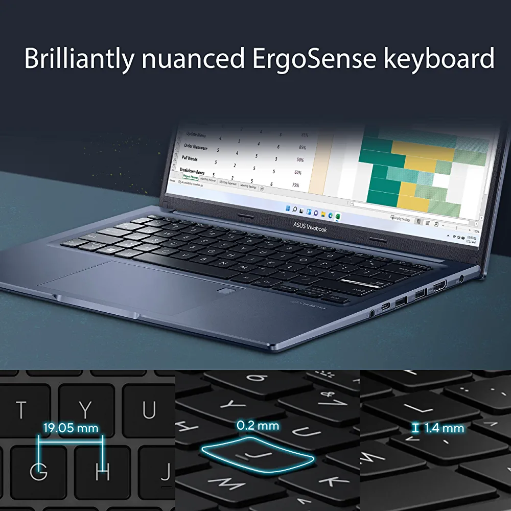 ASUS VivoBook 16X Laptop with AMD Ryzen 5 5600H CPU, 16GB RAM, and 512GB SSD. Features a 16″ WUXGA display, AMD Radeon Vega 7 Graphics, Fingerprint Sensor, and Windows 11 Home. Available in Quiet Blue, model M1603QA-ES54.