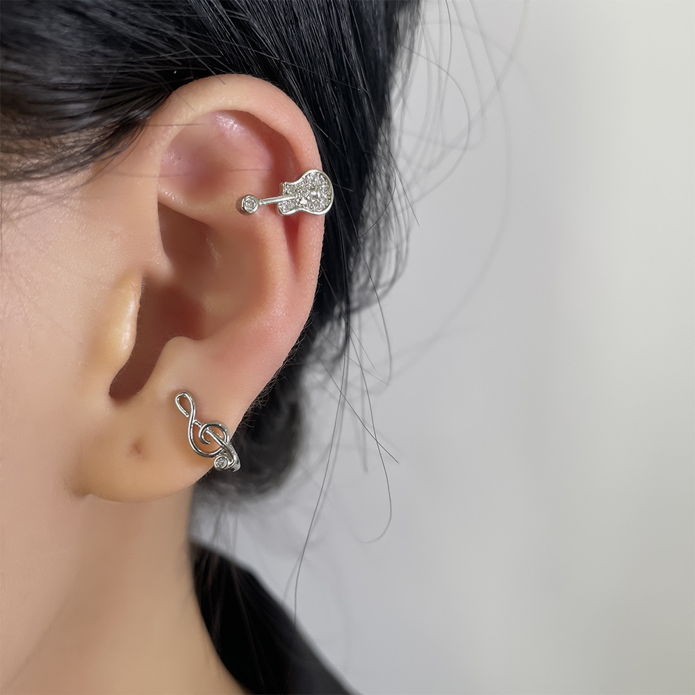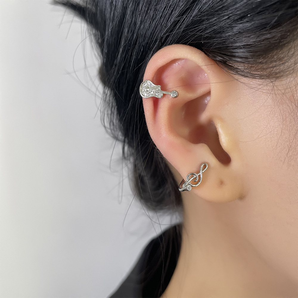 | nameOriginal | Asymmetric guitar musical note ear clip without pierced creative musical character earrings French romantic violin zircon ear bone clip |