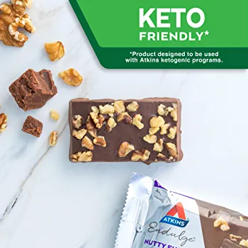 | descriptionOriginal | Description THE ATKINS MISSION. Atkins’ purpose is to improve global health and to help people understand that eating right is about both losing weight and becoming healthy. That’s done through the use of imagination, innovation, partnerships and commitment to science to make it easy to eat right. NUTTY FUDGE BROWNIE BAR. Atkins' treats help support your low carb lifestyle without compromising flavor. This bar delivers all the chewy, chocolatey taste you crave with none of the guilt. So the next time you need some sweetness, reach for this scrumptious brownie treat with walnuts and a chocolatey coating. WHAT’S INSIDE. Let this keto-friendly* treat delight your taste buds while keeping your lifestyle on track. Includes 1 pack of 5 individually wrapped 1.41 oz bars with 7 grams of protein, 5 grams of fiber, 2 grams of net carbs and 1 gram of sugar per serving.*When used with Atkins ketogenic programs EAT RIGHT. NOT LESS. Cardiologist Dr. Robert C. Atkins saw that eating right, not less, improved his patients’ health – not just in terms of weight loss but also reducing chronic issues. Over the last 45 years, mounting evidence is revealing that Dr. Atkins was right. PUBLIC HEALTH ADVOCACY. The “Atkins Diet” started as a fad, but quickly became a counter-conventional movement that reset people’s understanding of nutrition and weight loss, and its link to health. Atkins public health advocacy has played a significant role in updating dietary guidelines, moving them from less and towards right. |
