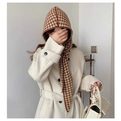 | nameOriginal | Atmosphere Korean style houndstooth shawl hat women's autumn and winter warm hat scarf integrated ear protection wool knitted hat |
