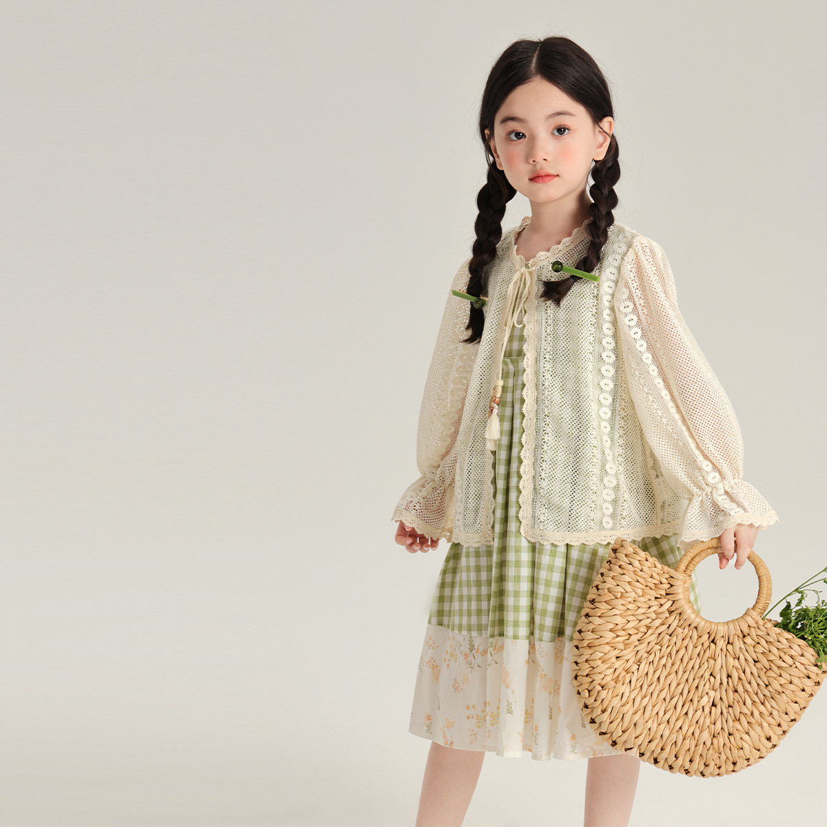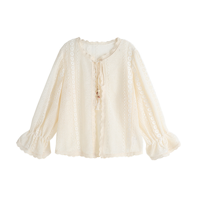 | nameOriginal | Atmosphere Sense Hollow Horn Sleeve Girls' Cardigan 2024 Summer New Children's Thin Lace-up Blouse Coat Korean Style |