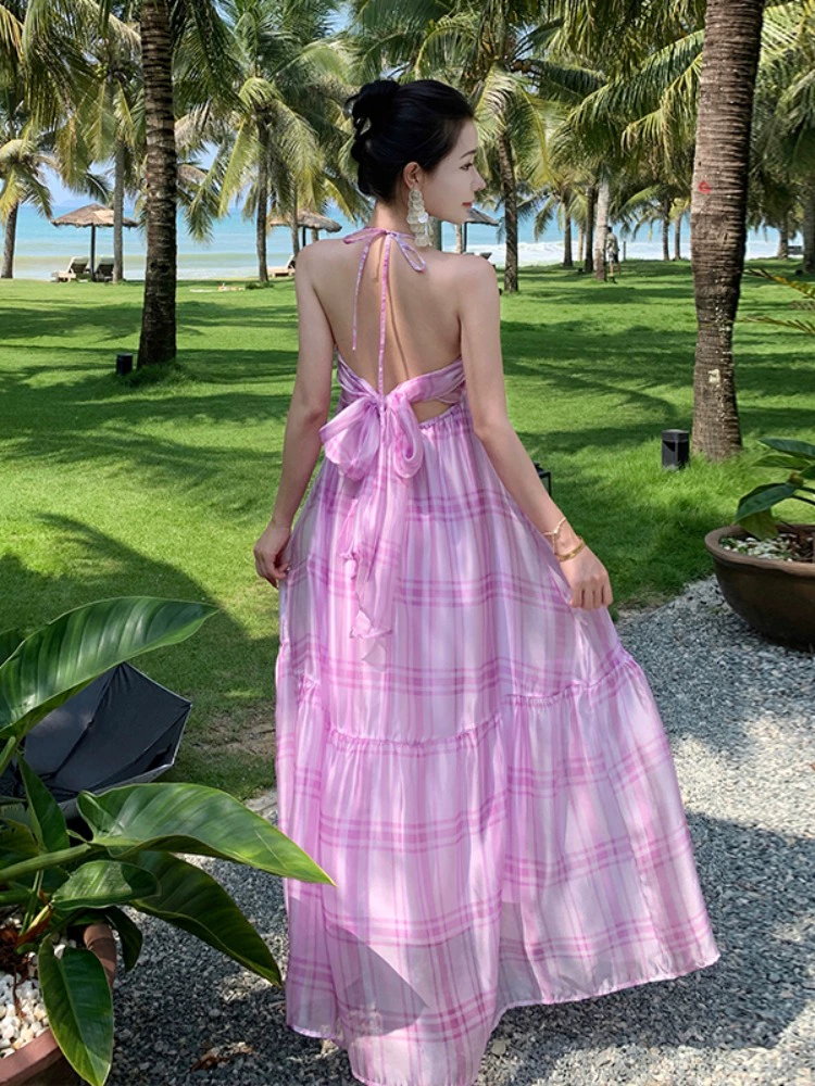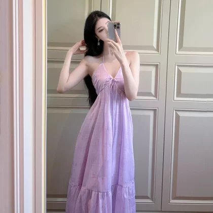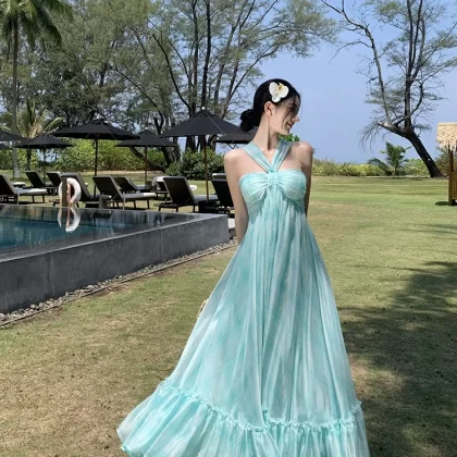| nameOriginal | Atmospheric halter-neck fairy-like beach dress with wide swing |