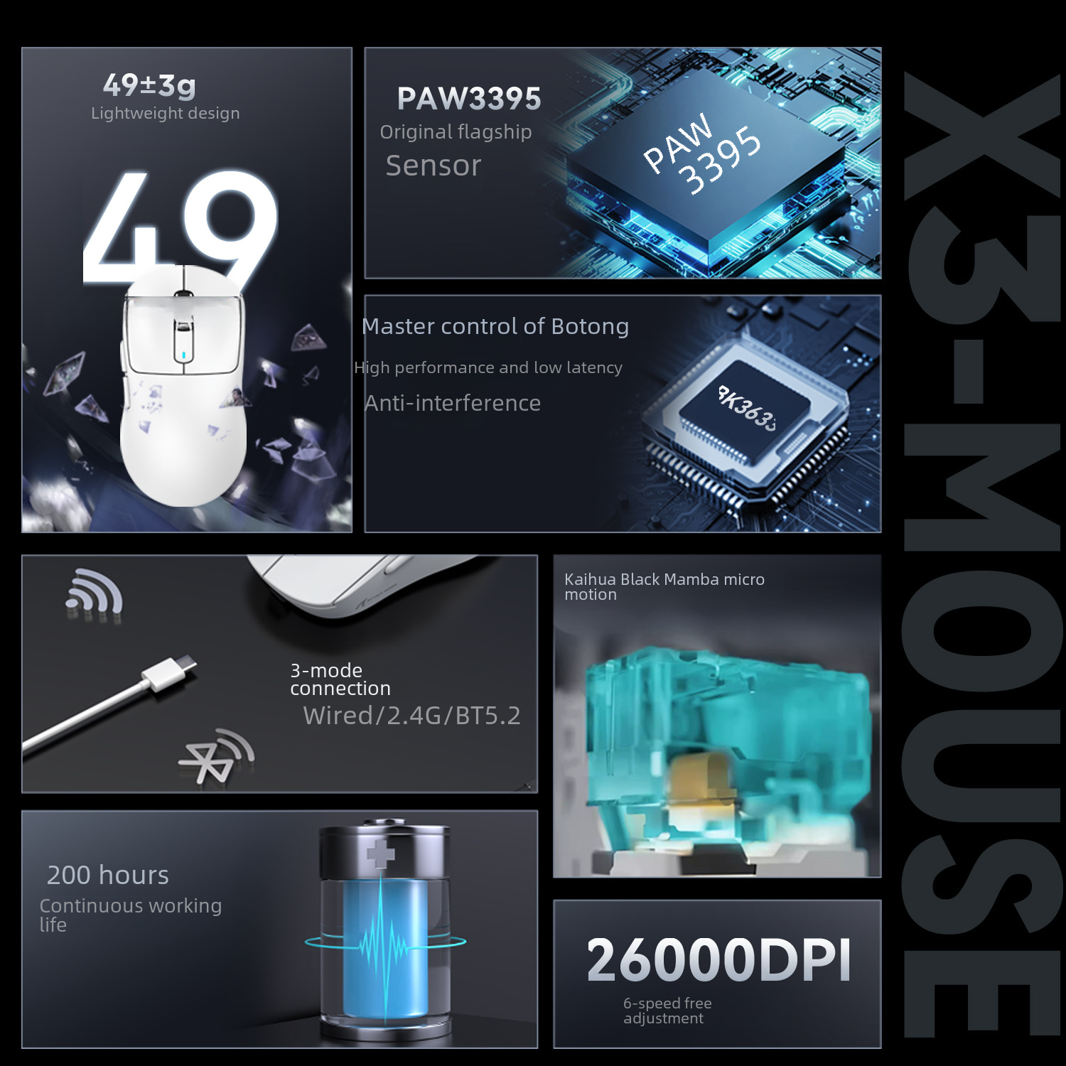 Attack Shark Attack Shark X3 mouse lightweight PAW3395 e-sports game three-model Wireless Mouse
