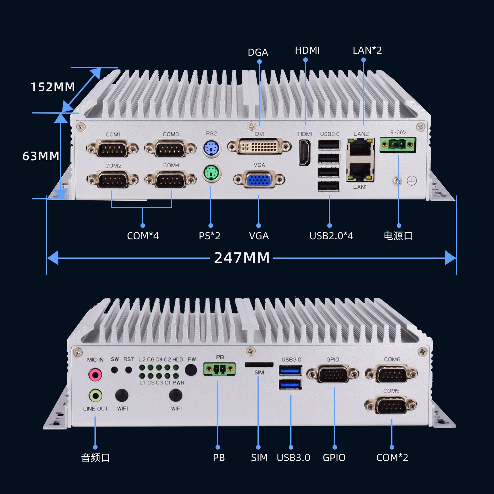 ATX power supply 2 gigabit network port mini host fanless heat dissipation automation control industrial computer