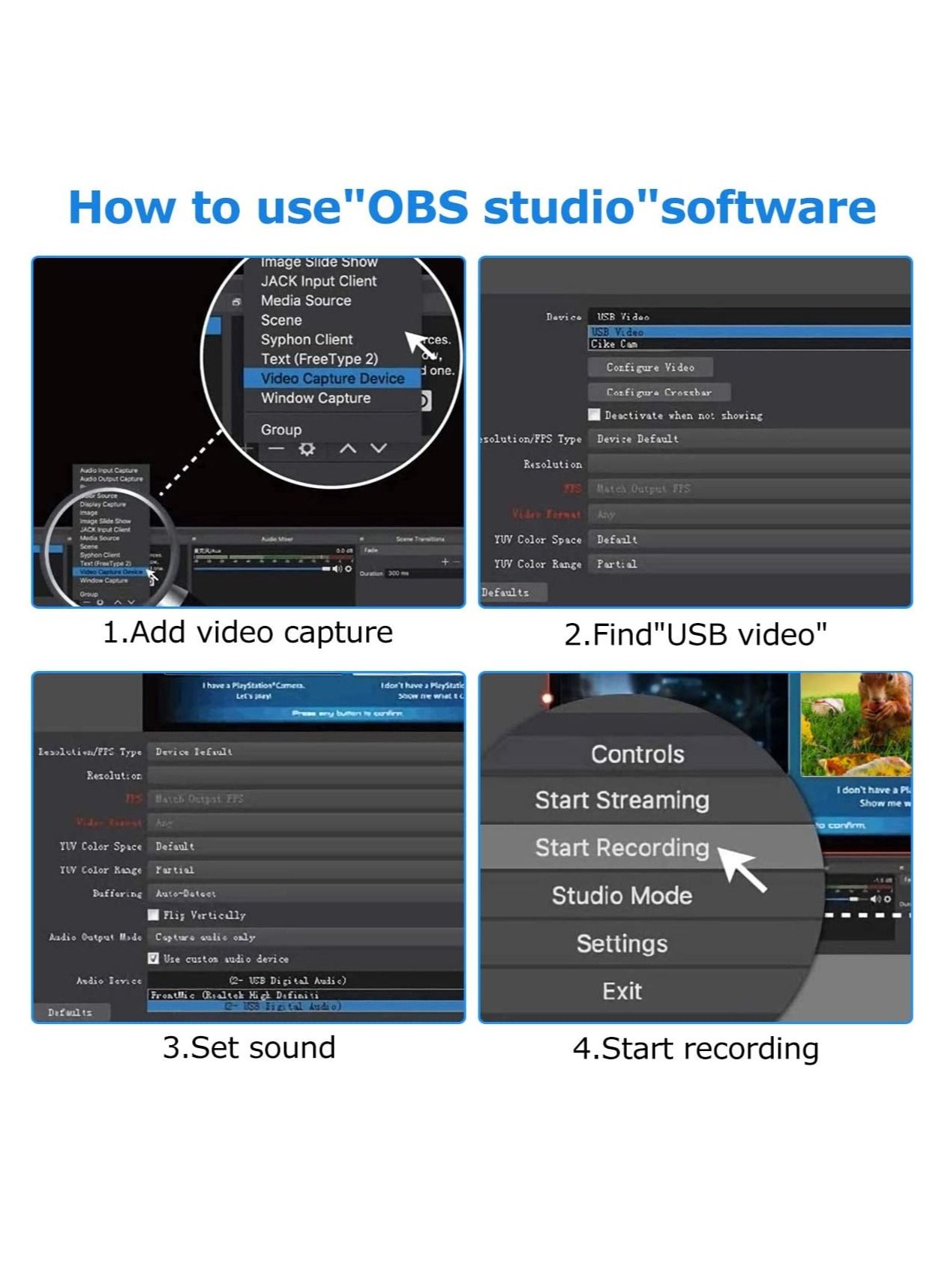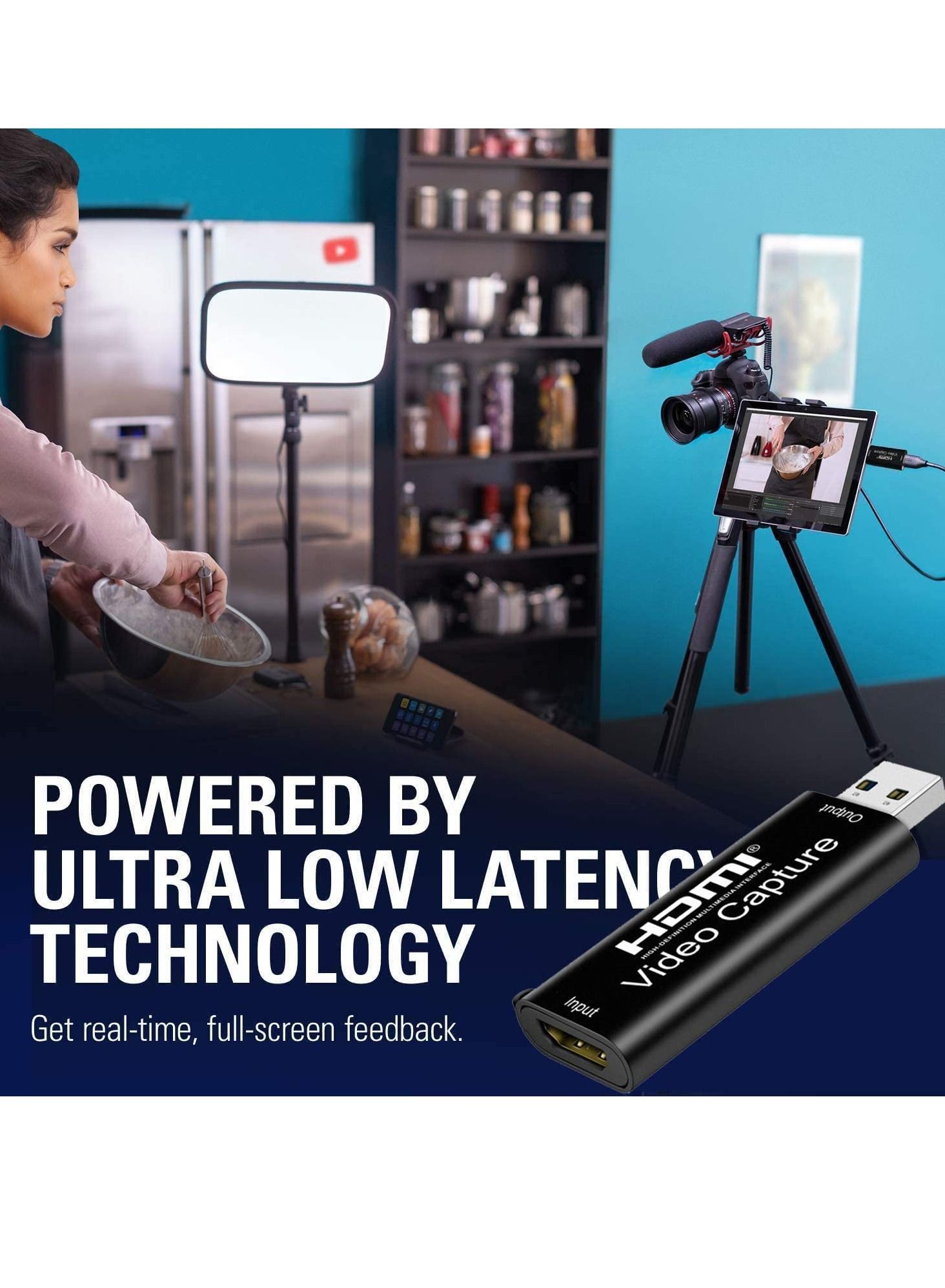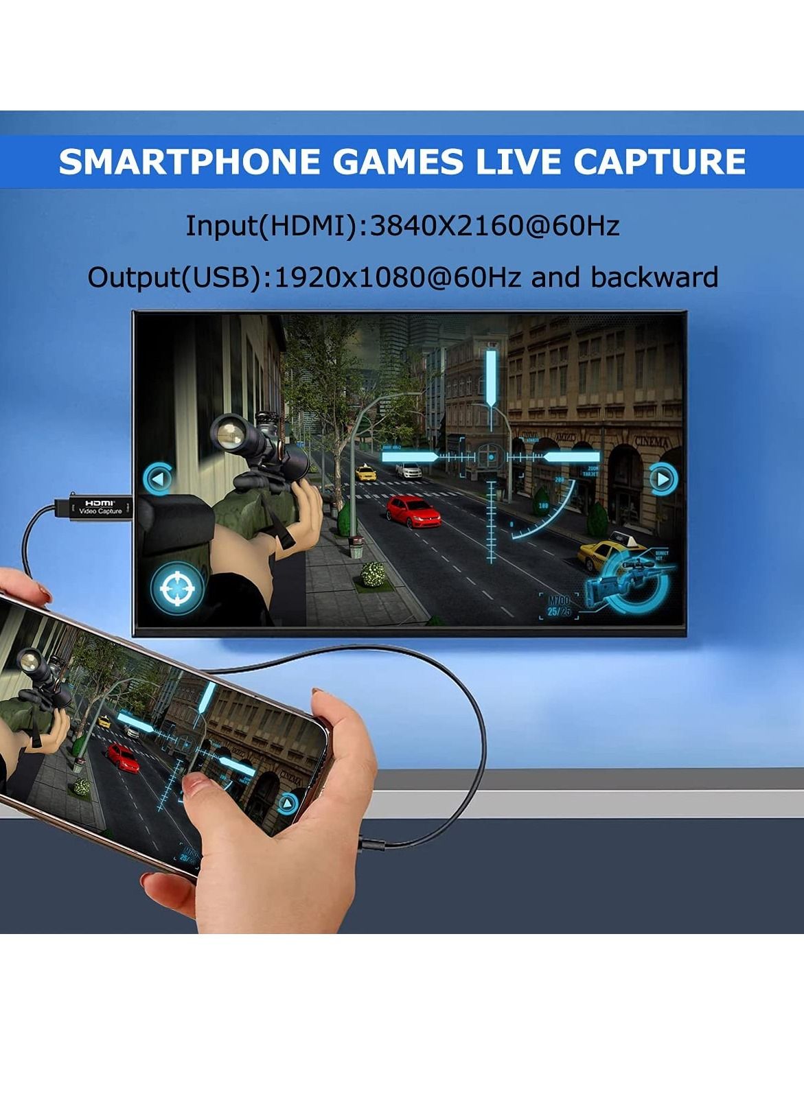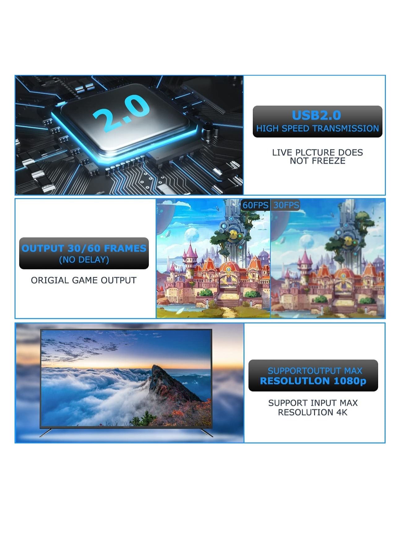| nameOriginal | Audio Video Capture Cards HDMI to USB 1080P USB 2.0 Record via DSLR Camcorder Action Cam for Gaming Live Broadcasting Streaming Black |