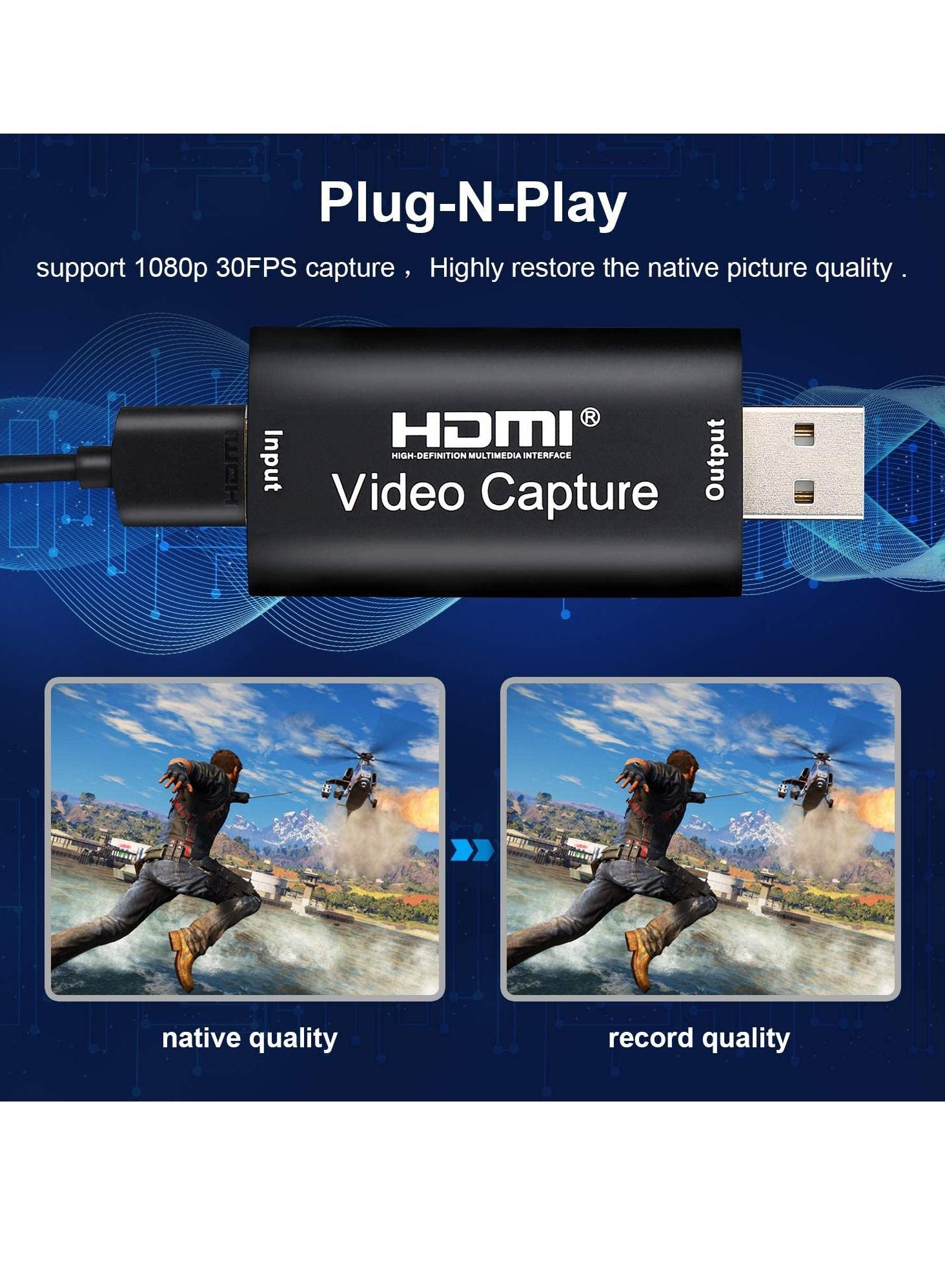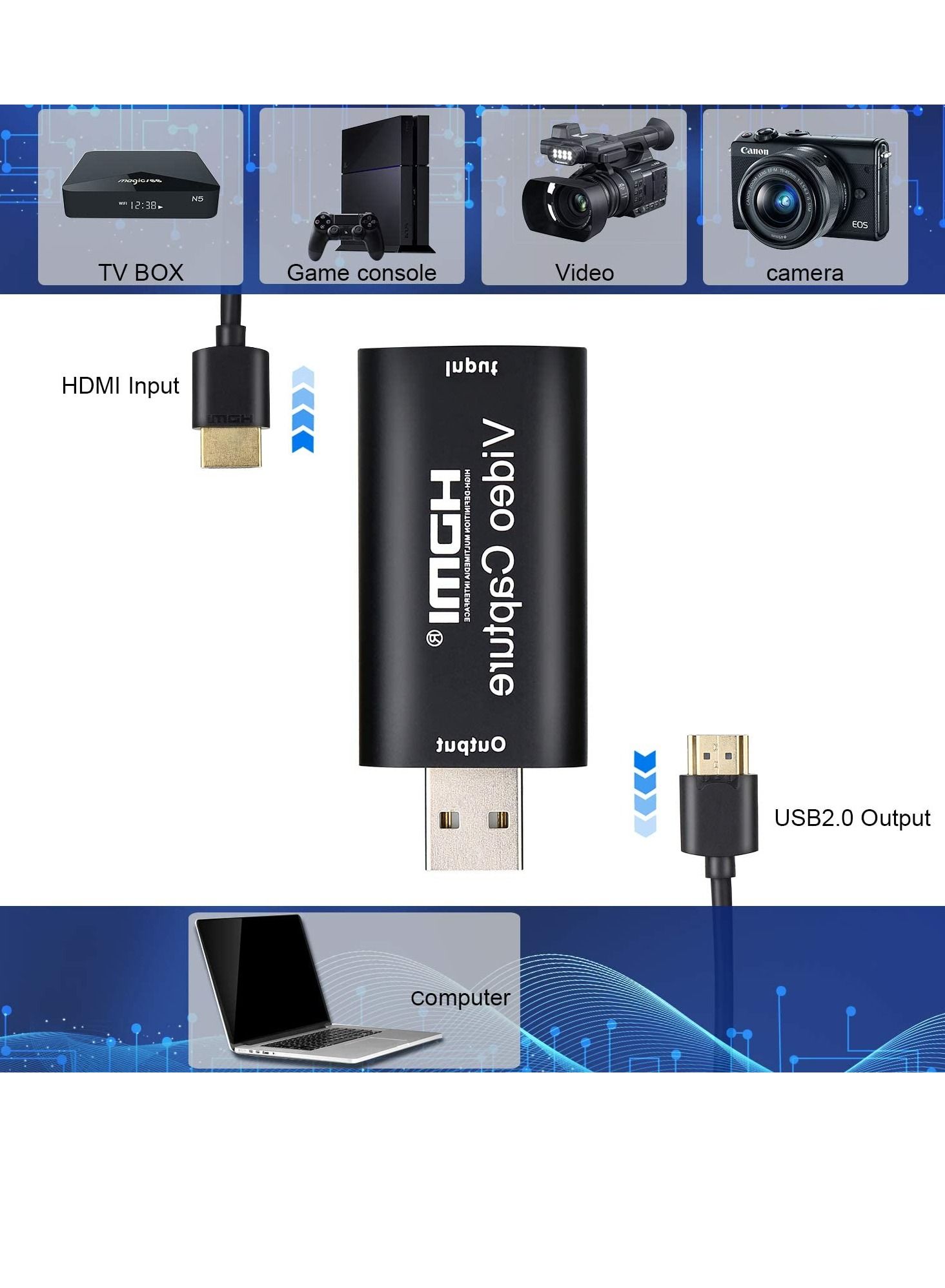 | nameOriginal | Audio Video Game Capture Card HDMI to USB 2.0 1080p Video Recorder Live Streaming for Gaming, Streaming, Teaching, Video Conference Compact HDMI Video Capture Device |