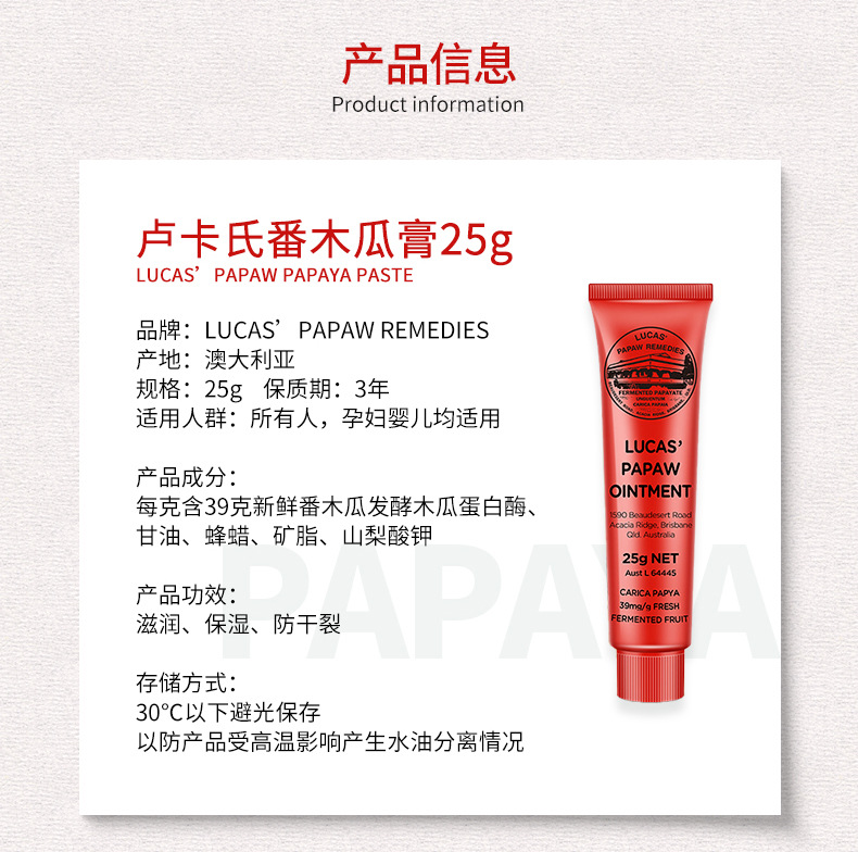 Australia lucaspapaw small papaya Balm lip balm universal cream scald cream moisturizing and hydrating 25g