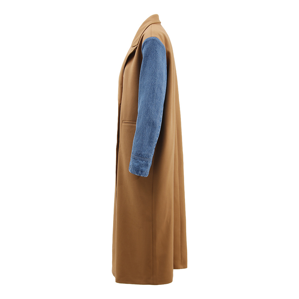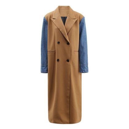 Australian personality catwalk Denim contrast color stitching trench coat women’s autumn new temperament double-breasted long coat tide