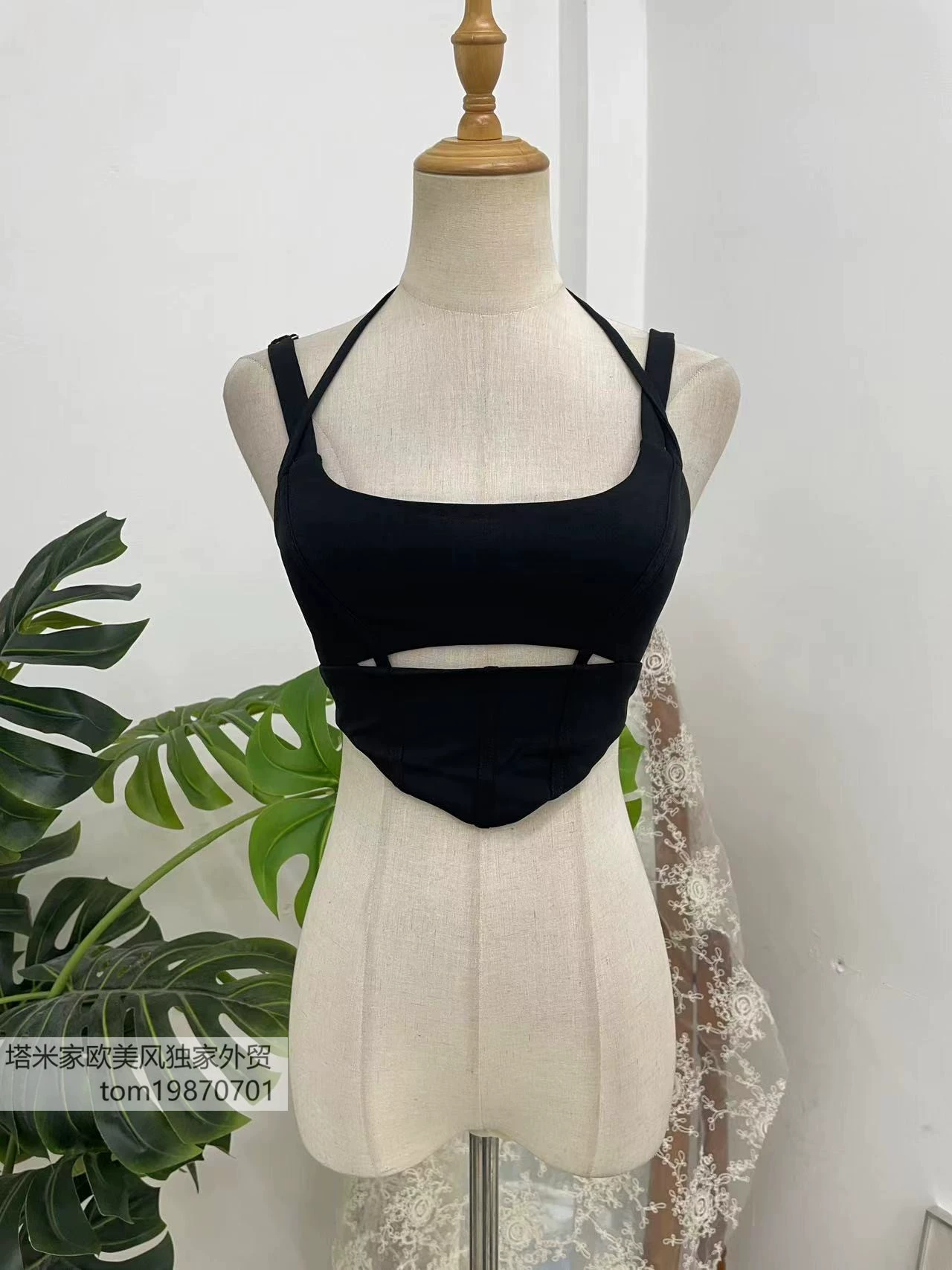 | nameOriginal | Australian single hollowed out short top with halter neck straps |