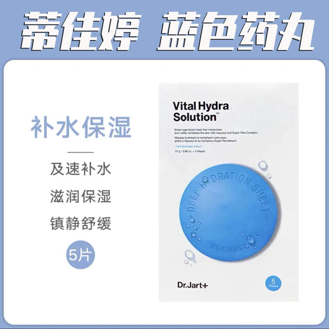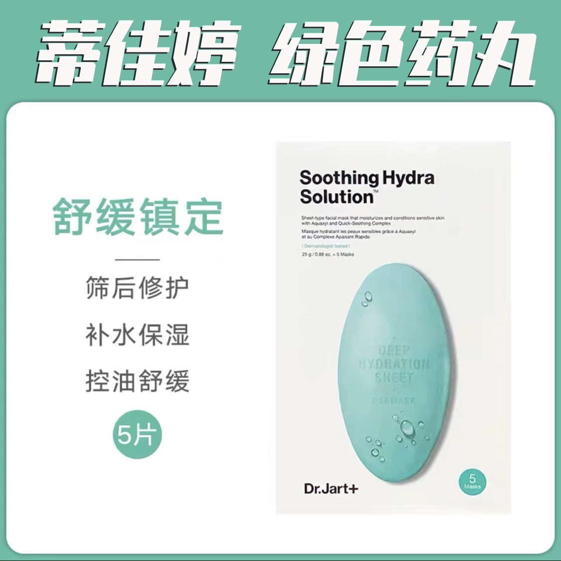 Authentic Korean Dr.jart + Di Jiating pill mask, blue hydrating green calming, 5 pieces in a box