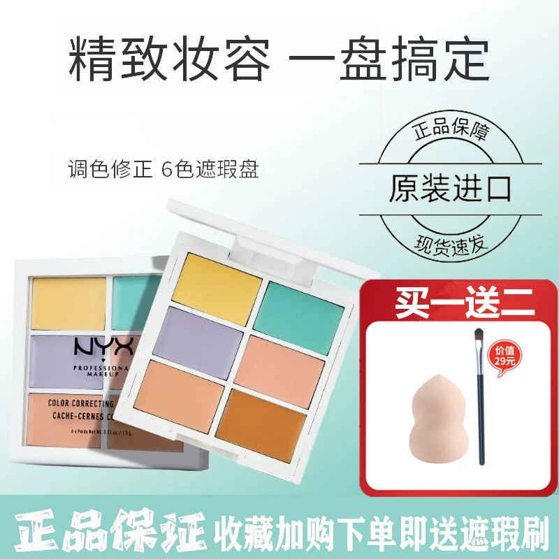 | nameOriginal | Authentic NYX six-color concealer palette, high-gloss contouring 6-color concealer to cover acne marks, dark circles, spots, red bloodshot |