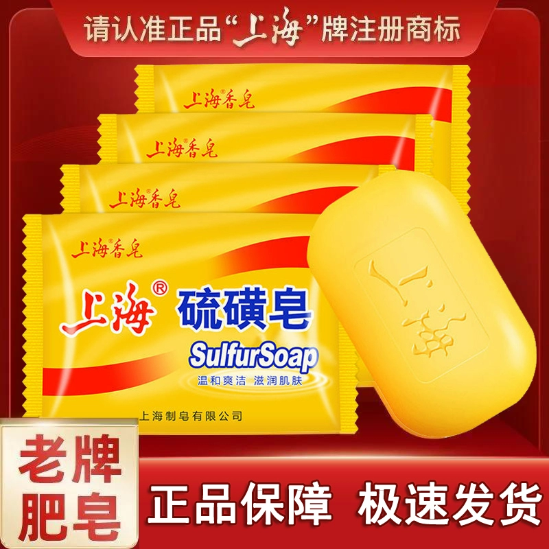 | nameOriginal | Authentic promotion Shanghai sulfur soap for bathing, washing face, removing acne and itching, cleaning and removing mites soap, old brand |