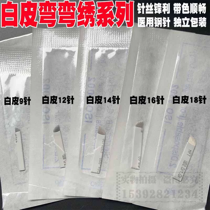 | nameOriginal | Authentic semi-permanent eyebrow tattoo handmade line eyebrow white leather 14/18 needle fixed frame curved eyebrow tattoo needle piece |