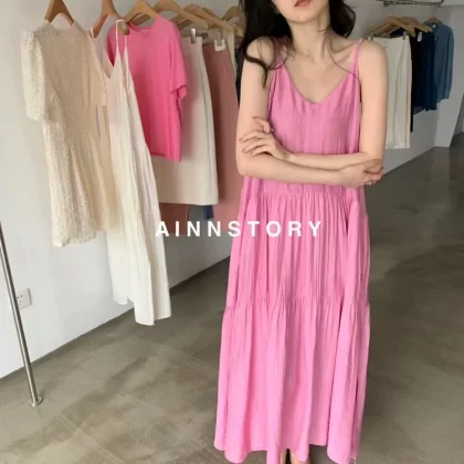 | nameOriginal | Authentic summer drape pleated bohemian seaside resort style loose and age-reducing slimming suspender dress |