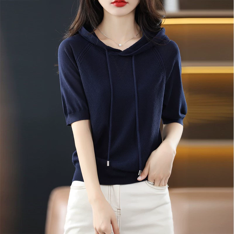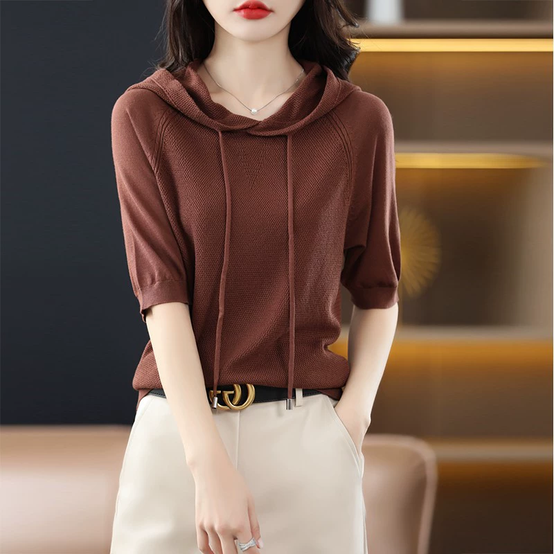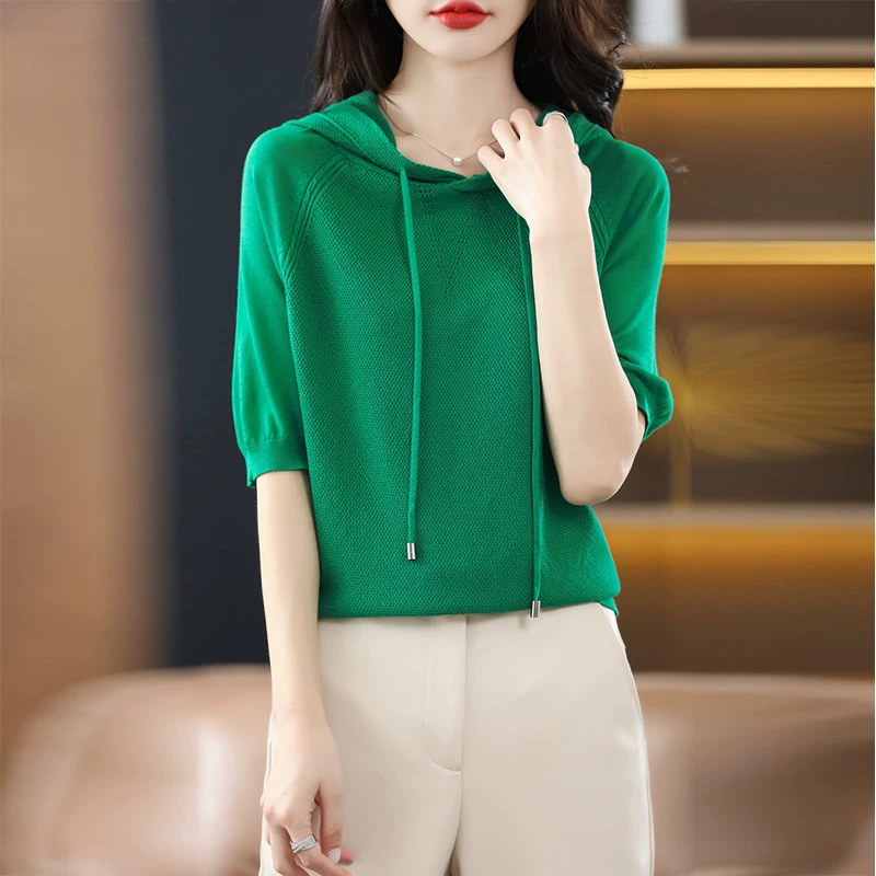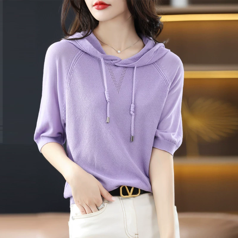 | nameOriginal | Authentic thin ice silk three-quarter sleeve T-shirt hooded sweatshirt |