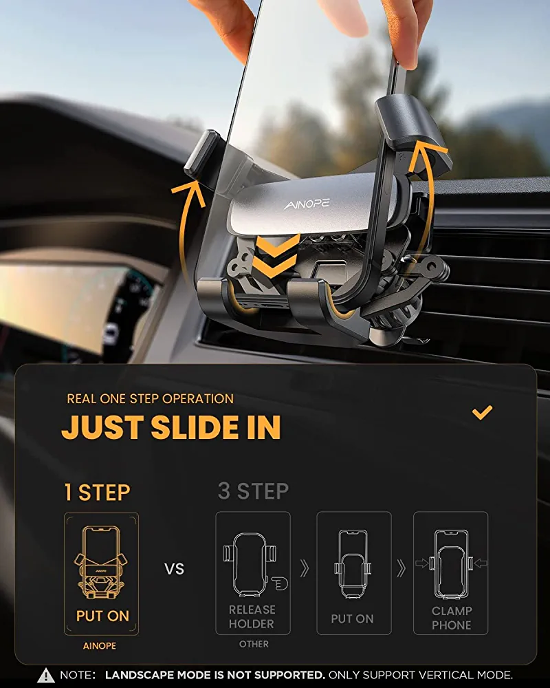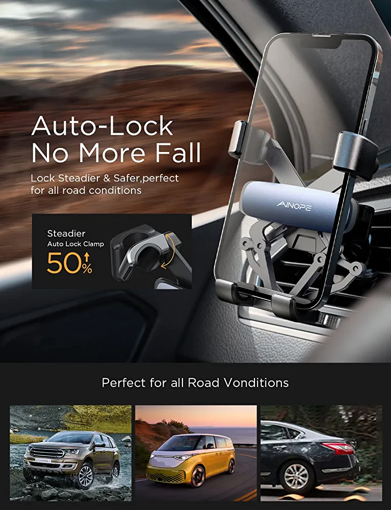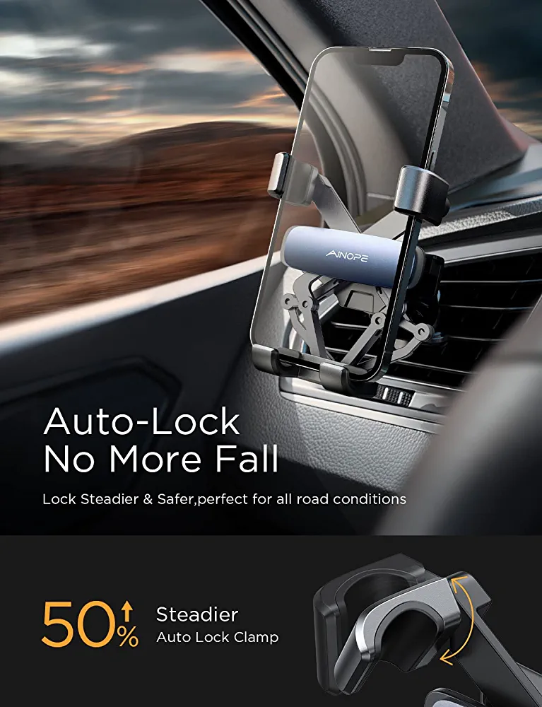 | nameOriginal | AINOPE Gravity Phone Holder for Car, Air Vent Phone Holder with Hook Like Clips Hand Free Automatic Car Phone Mount Auto-Clamping Cell Phone Car Mount for All Smartphone |