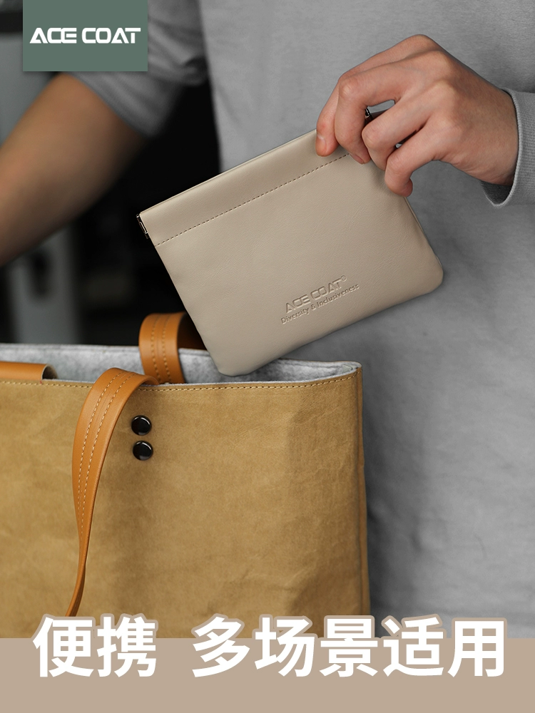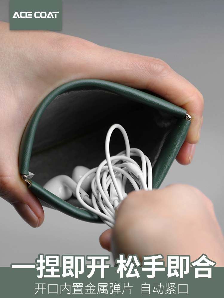 Automatic closing tight mouth storage bag wired headphone data cable portable bag power charger power bank mouse mobile hard drive USB magnetic suction box mini portable mobile phone shrapnel protective cover