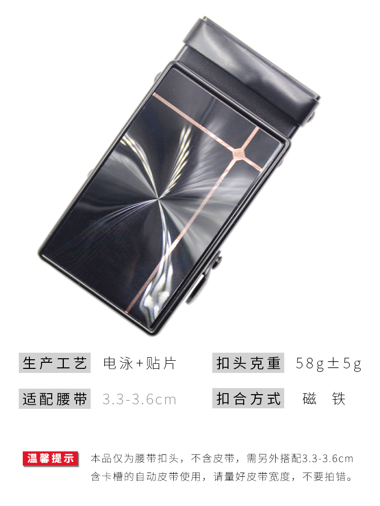 | nameOriginal | Automatic leather head clip buckle men's belt outer wear pants buckle business casual fashion smooth pure black iron buckle |