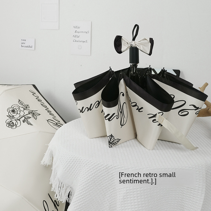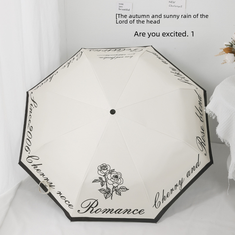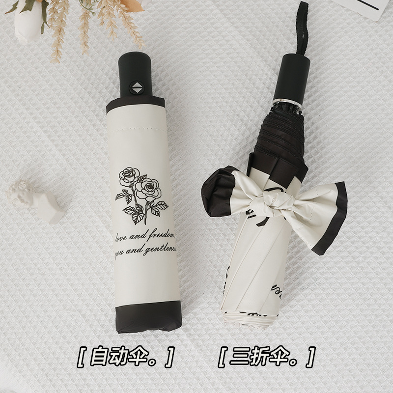 Automatic Tri-fold Sunny Umbrella Digital Folding Umbrella Vintage Rose Sun Umbrella Vintage UV Protection Sun Protection