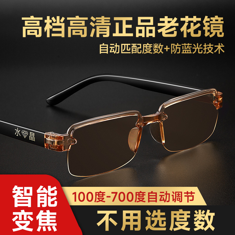 Automatic zoom 100-700 degree look near look far presbyopic glasses presbyopic glasses cut edge frameless new north Qin